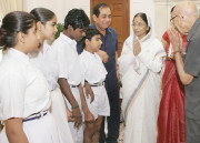 | Caption: | The President of India, Smt Pratibha Devisingh Patil interacting with the Students and Officals from National Association for the Blind on the occasion of All India Flag Day at Rashtrapati Bhavan in New Delhi on Sep 14, 2007 |