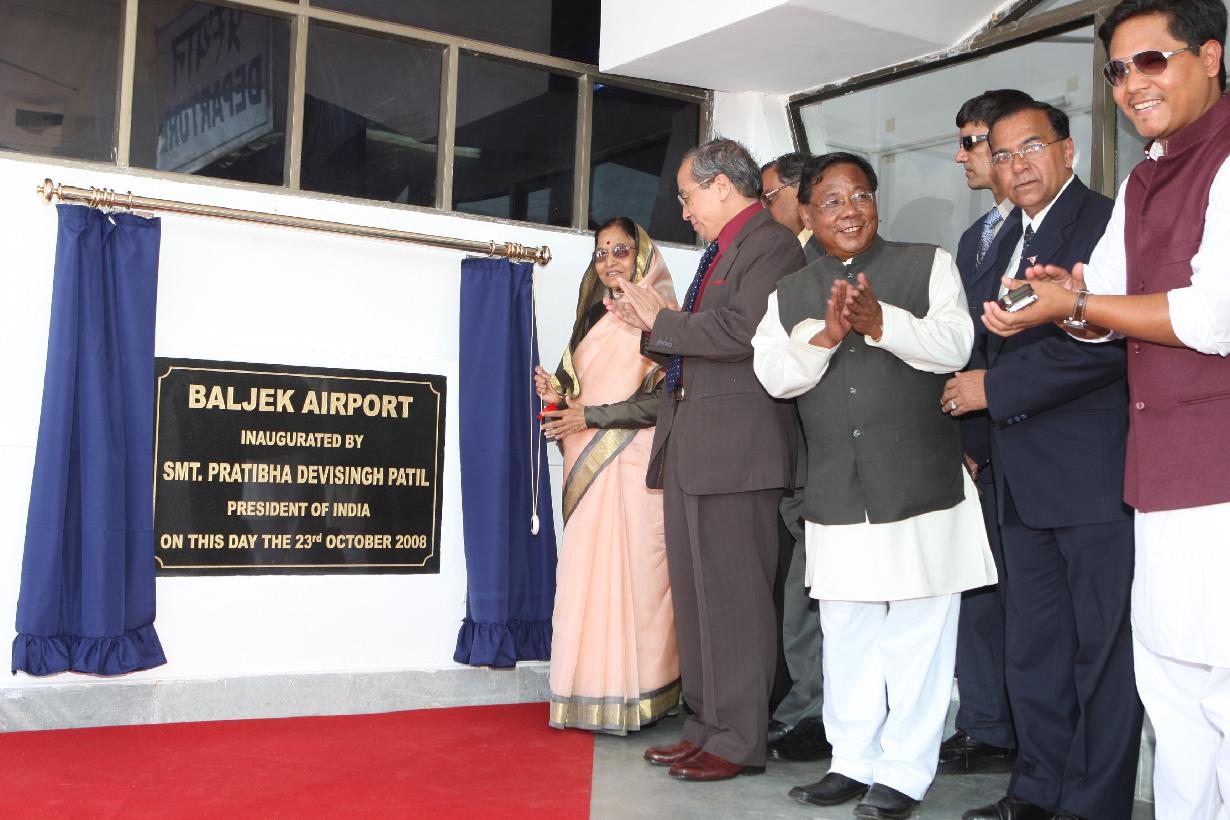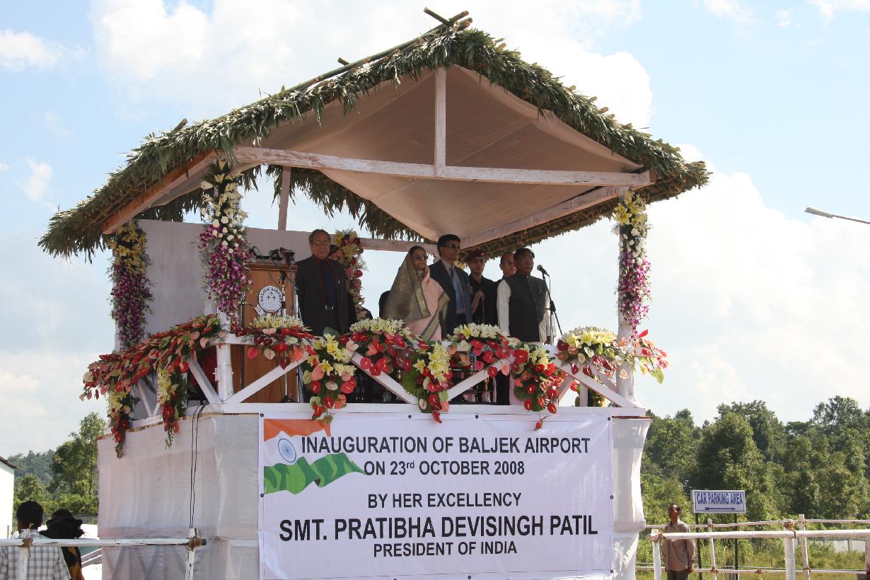 | Caption: | The President of India, Smt Pratibha Devisingh Patil inaugurating the Baljek Airport at Garo Hills of Eastern in Meghalaya on Oct 23, 2008 |
