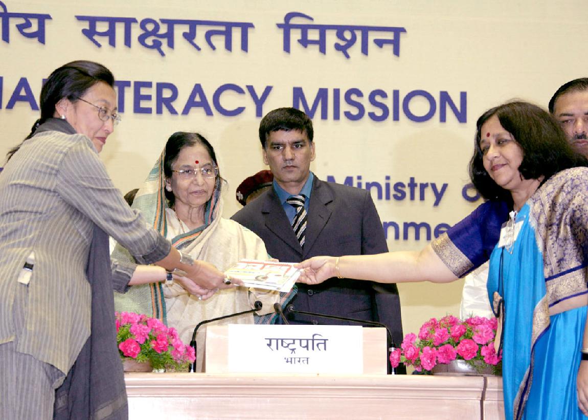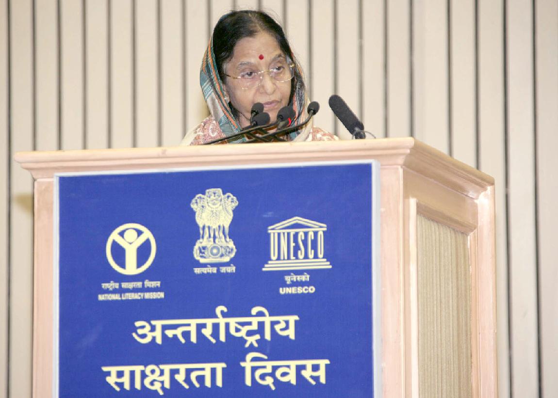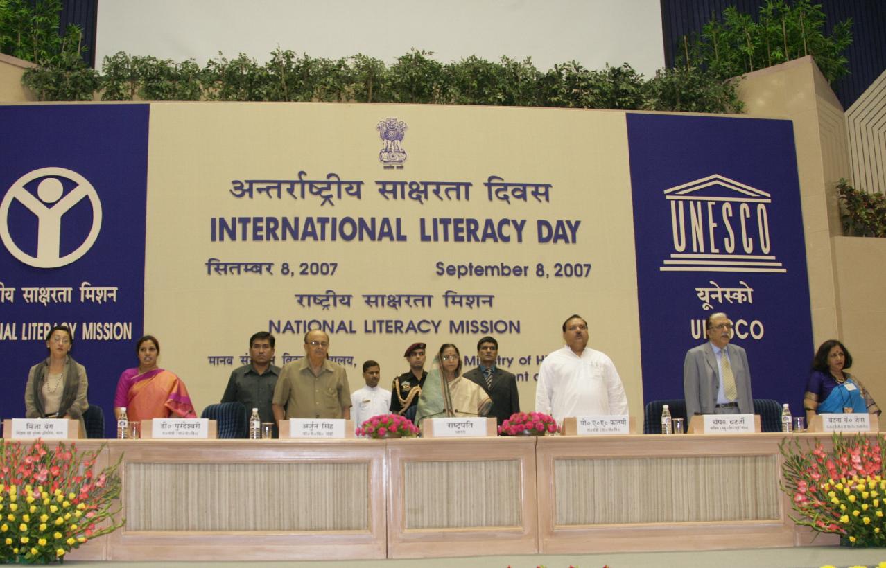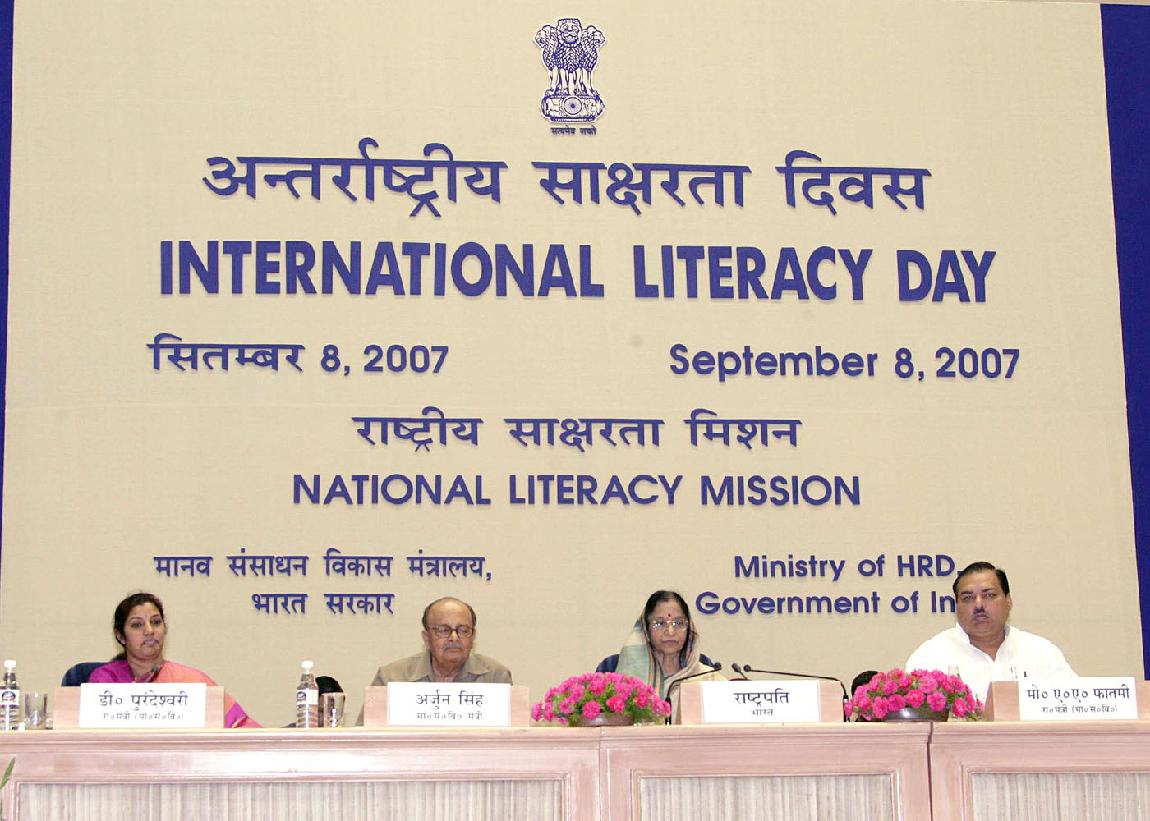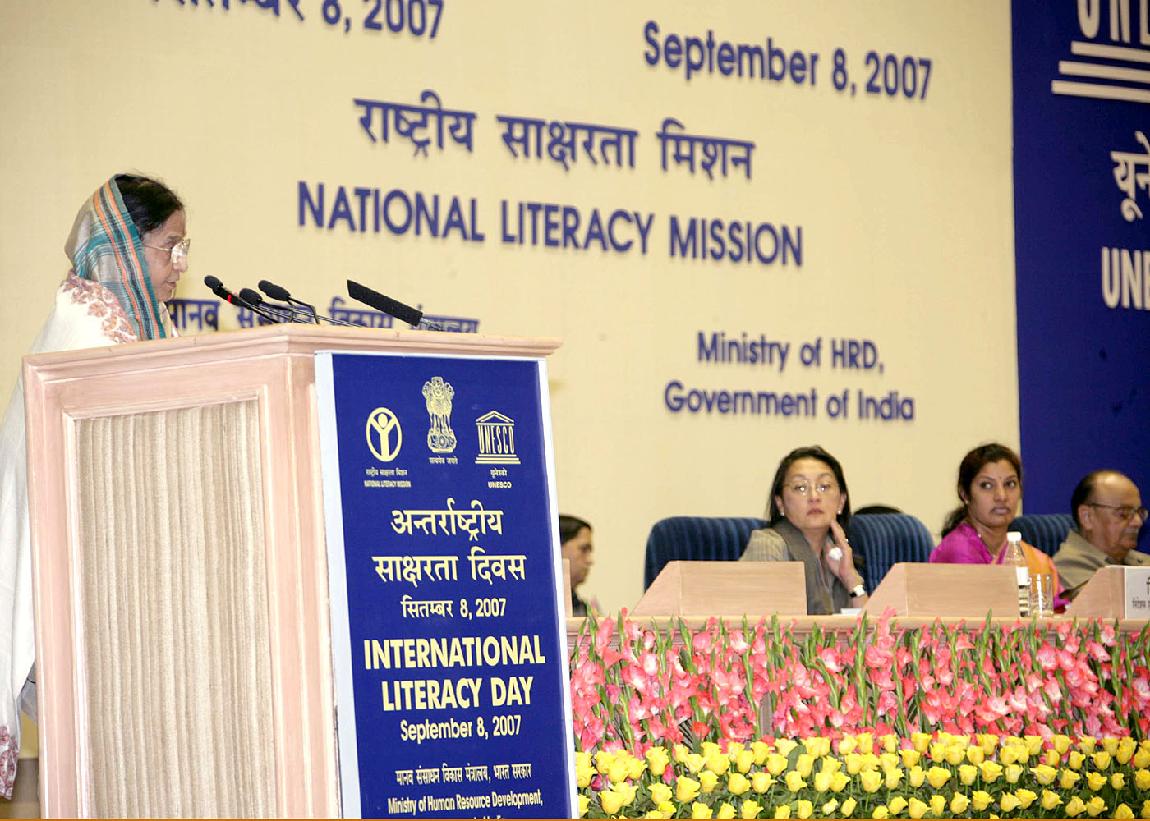 | Caption: | The President of India, Smt Pratibha Devisingh Patil at the Function being organised on the occasion of the International Literacy Day at Vigyan Bhavan in New Delhi on Sep 08, 2007 |