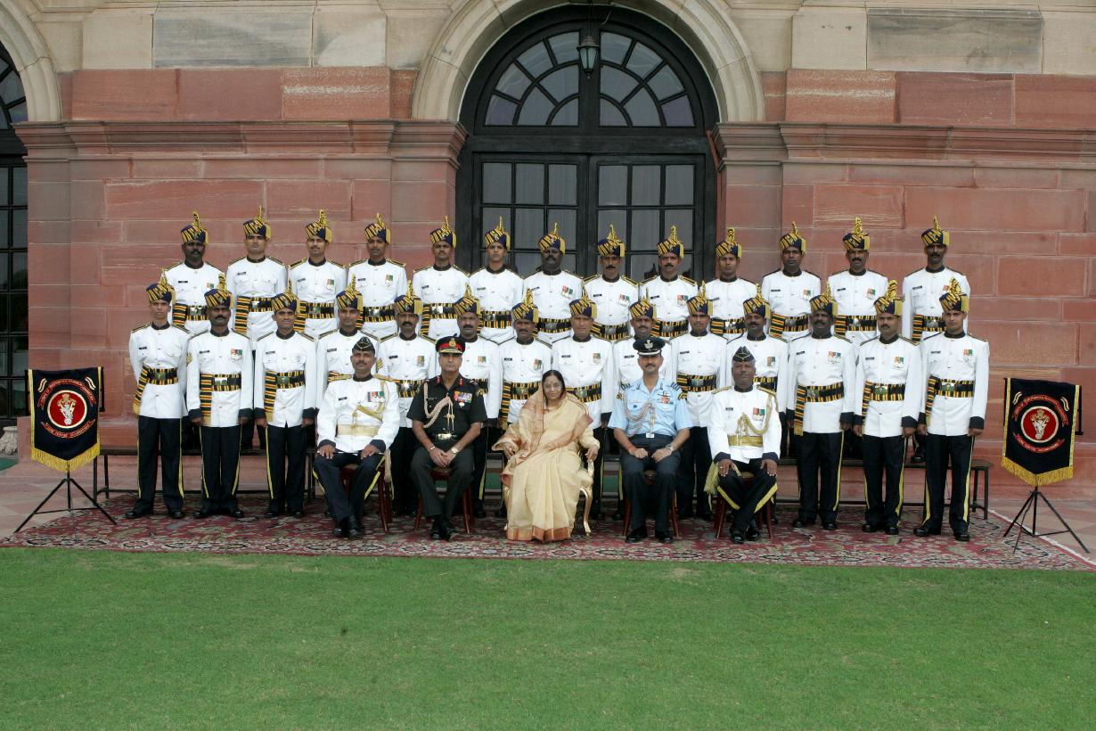 | Caption: | The President of India, Smt Pratibha Devisingh Patil posing for a Group photograph with the Band Personnel EME Centre (Secunderabad) Brass Band at East Laws of Rashtrapati Bhavan in New Delhi on Sep 28, 2007 |