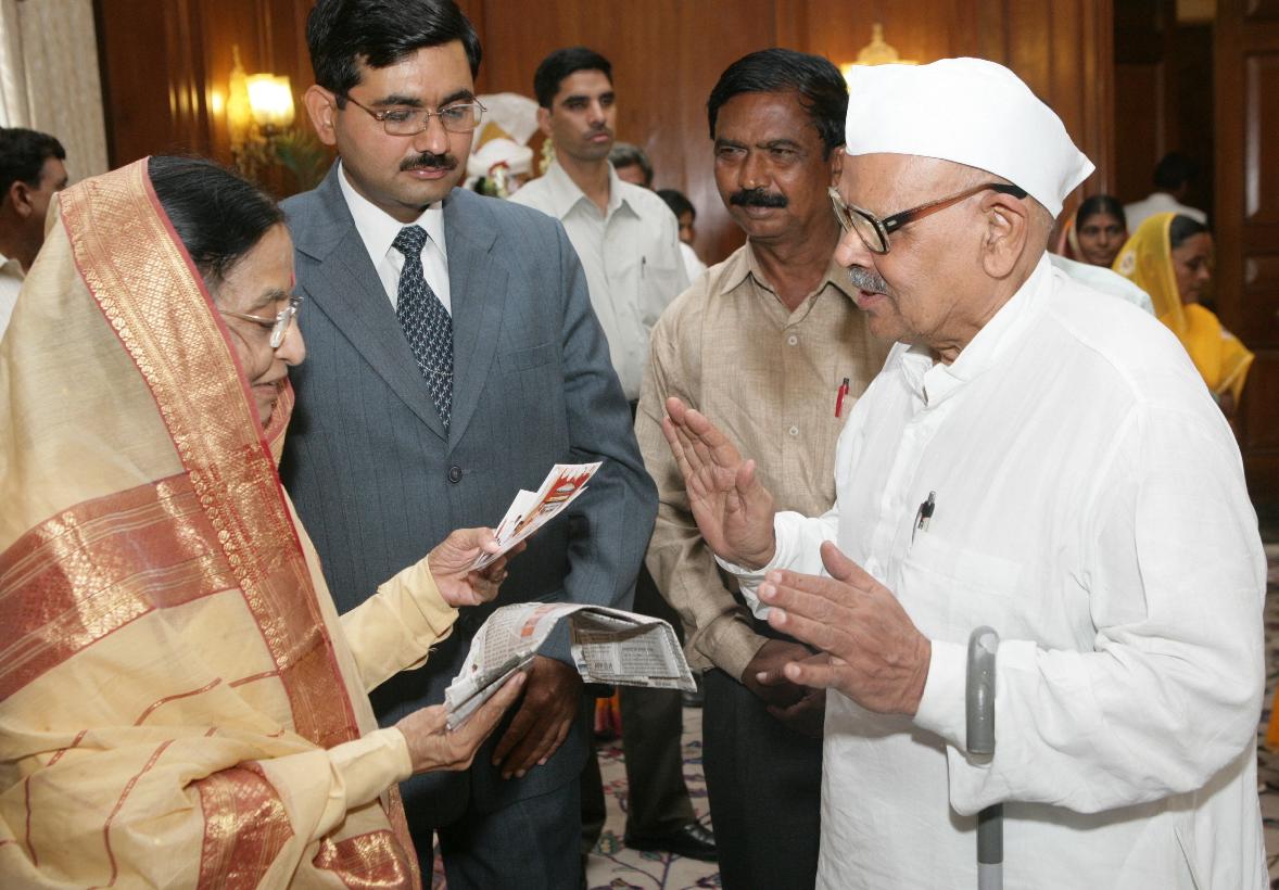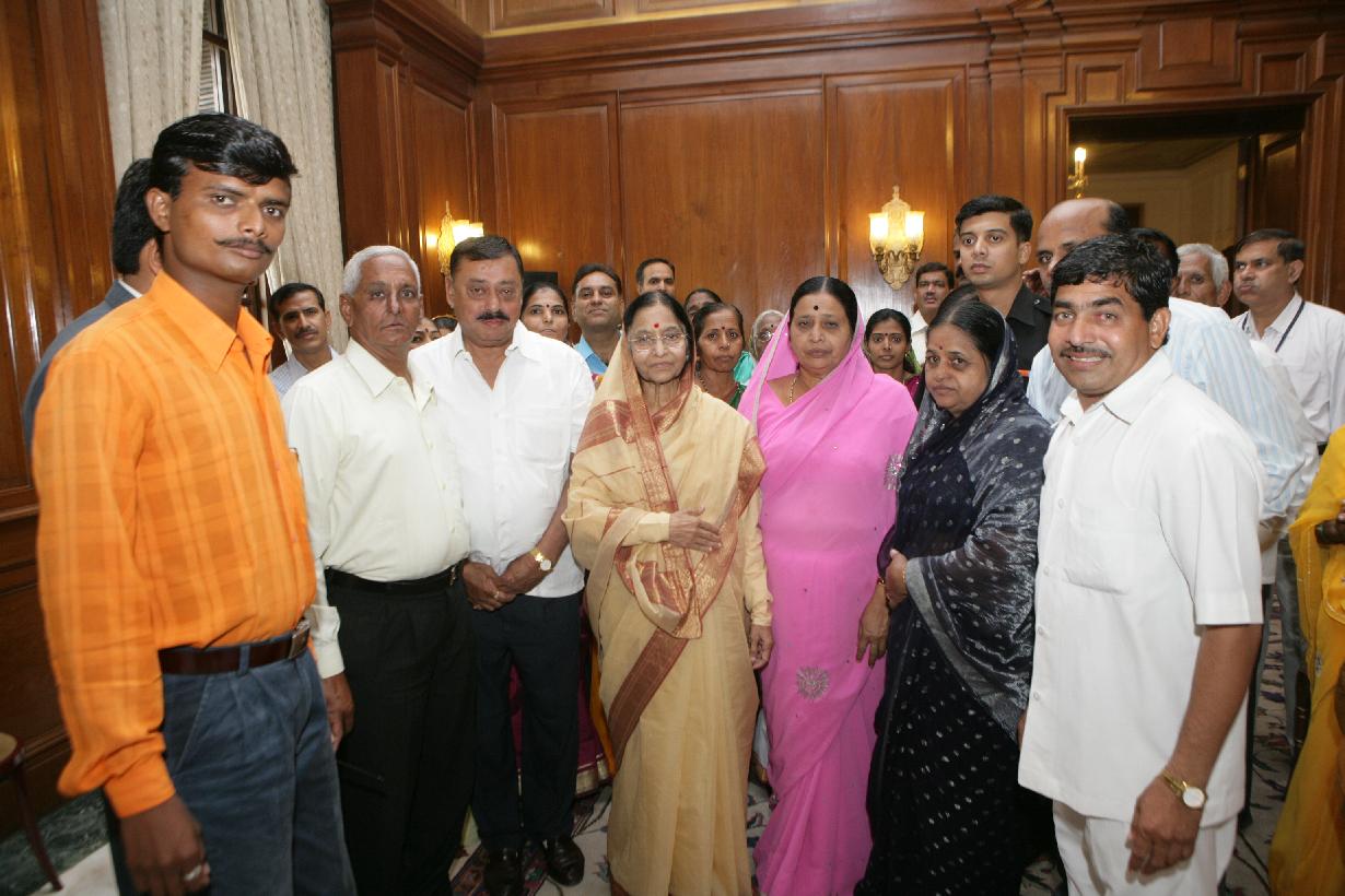 | Caption: | The President of India, Smt Pratibha Devisingh Patil interacting with Smt Shantatai Patil, Shri Gopalsingh R Patil of Jalgaon and others from Maharashtra at Committee Room of Rashtrapati Bhavan in New Delhi on Sep 28, 2007 |
