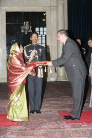 | Caption: | The High Commissioner-Designate of Malawi to India, HE Mr Brain G Bowler presenting his credential to the President of India, Smt Pratibha Devisingh Patil at Rashtrapati Bhavan in New Delhi on Feb 13, 2008 |