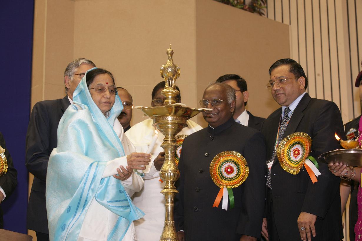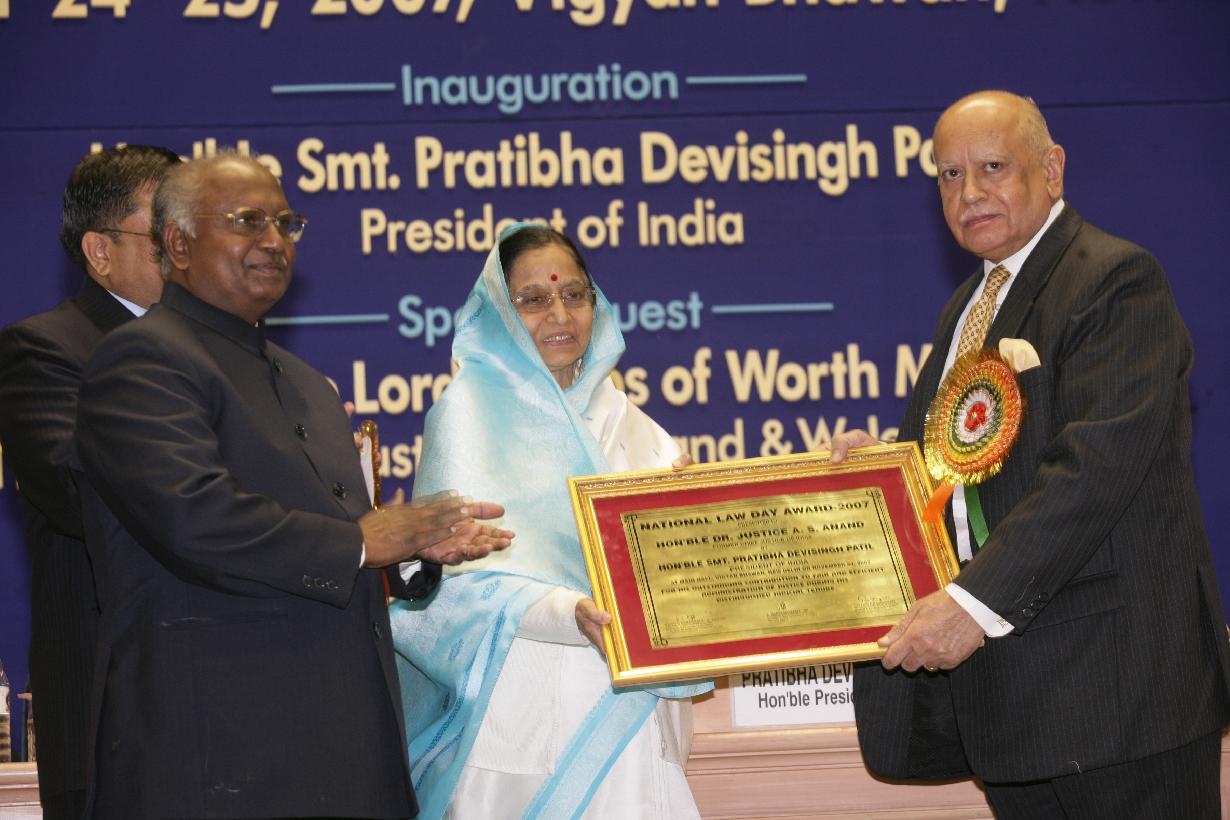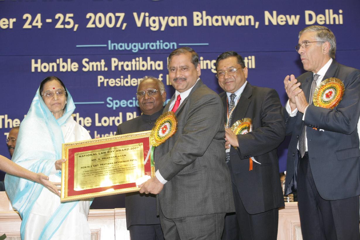 | Caption: | The President of India, Smt Pratibha Devisingh Patil presenting the International Jurist Award at Vigyan Bhavan in New Delhi on Nov 24, 2007 |