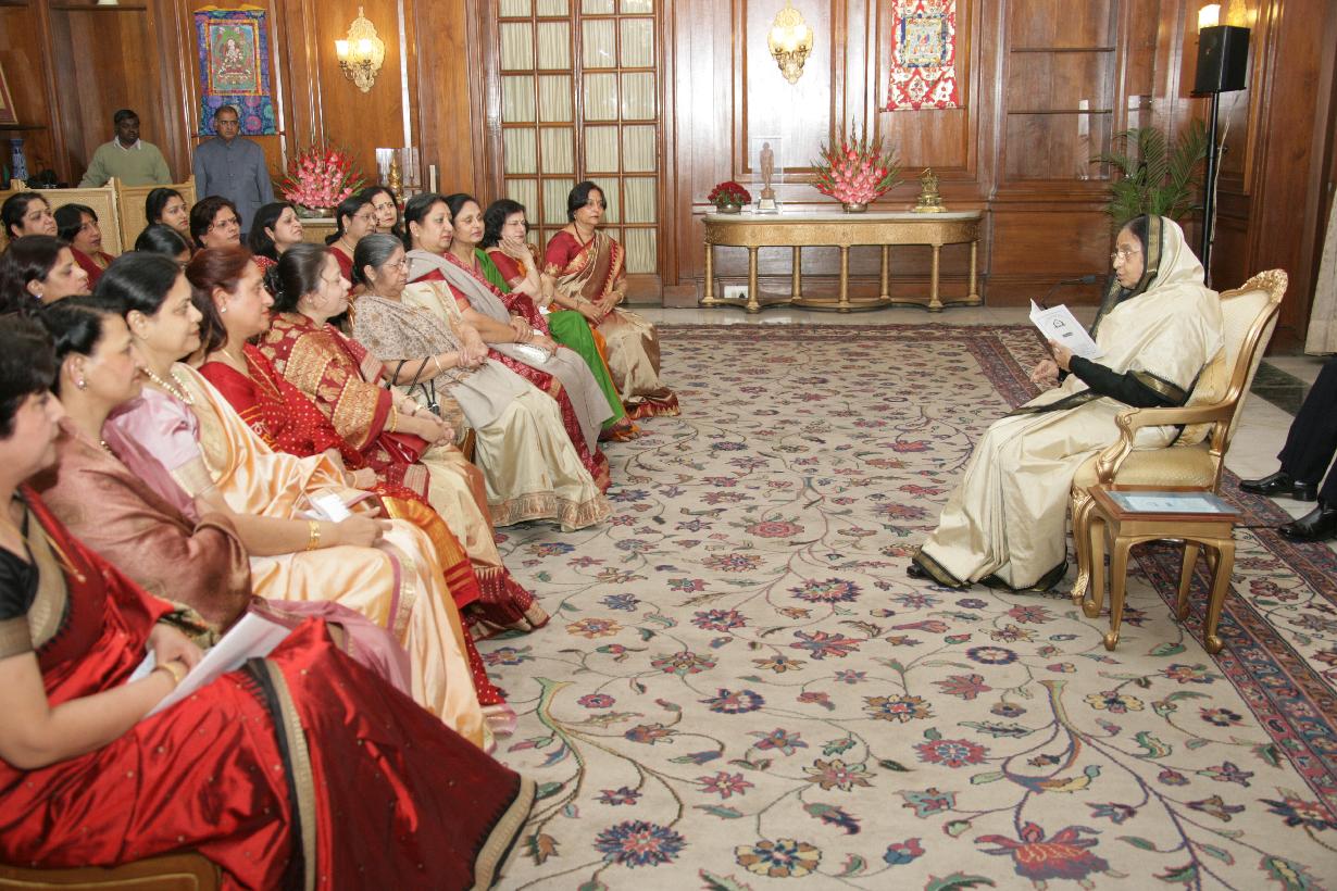 | Caption: | The President of India Smt Pratibha Devisingh Patil interacting with the Members of CPWD Officers Wives Association at Rashtrapati Bhavan in New Delhi on Dec 12, 2007 |