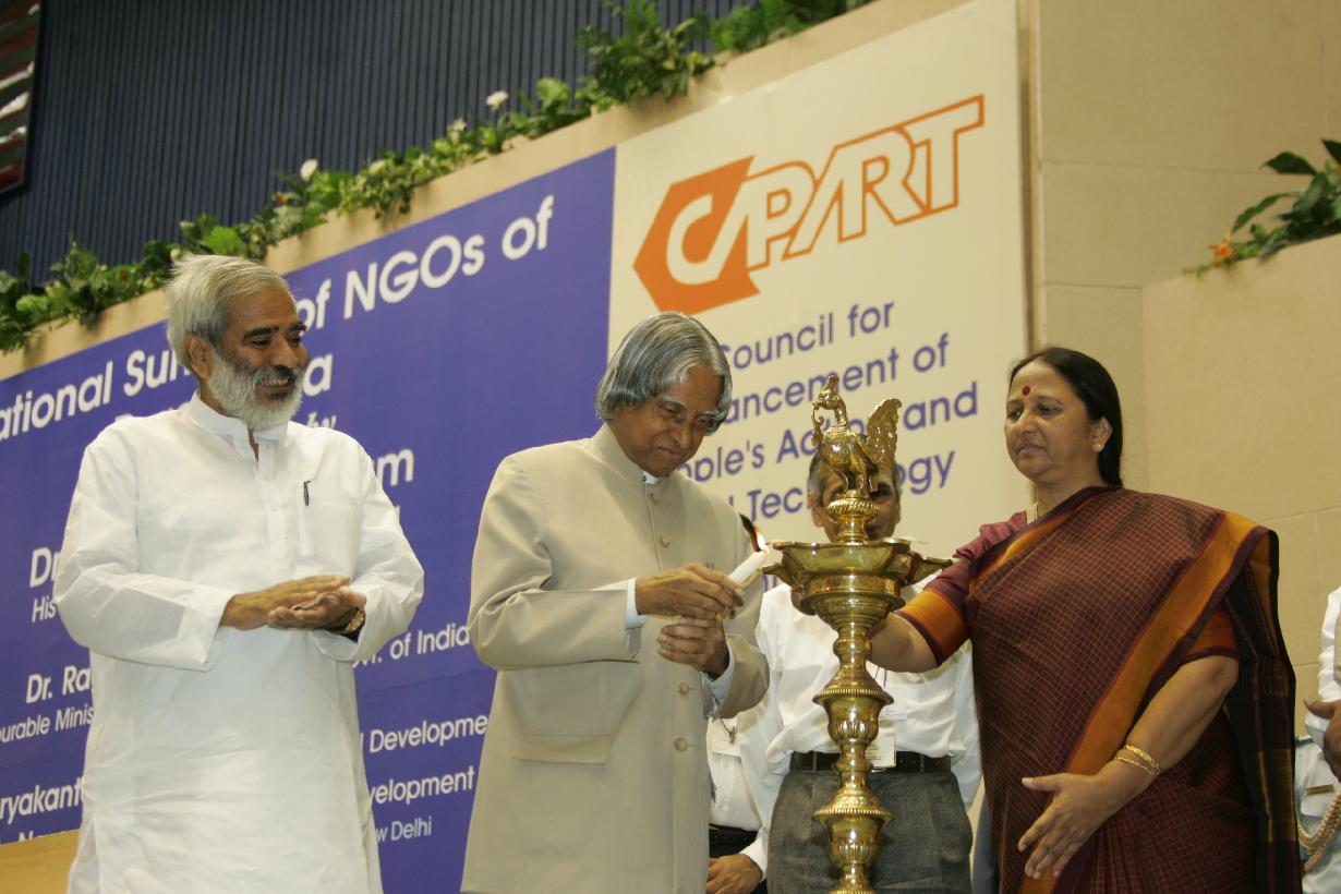 | Caption: | The President of India, Dr A P J Abdul Kalam inaugurating the National Summit of NGOs of Rural India organized by the Council for Advancement of People's Action and Rural Technology (CAP ART) at Vigyan Bhavan in New Delhi on April 25, 2005 |