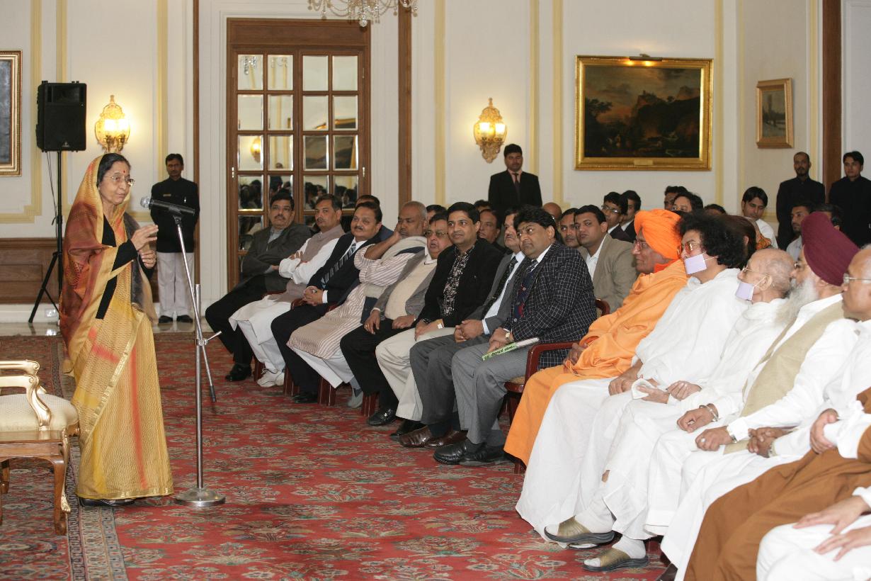 | Caption: | The President of India Smt Pratibha Devisingh Patil interacting with the Members of Rashtriya Ekta Samiti at Rashtrapati Bhavan in New Delhi on Dec 17, 2007 |