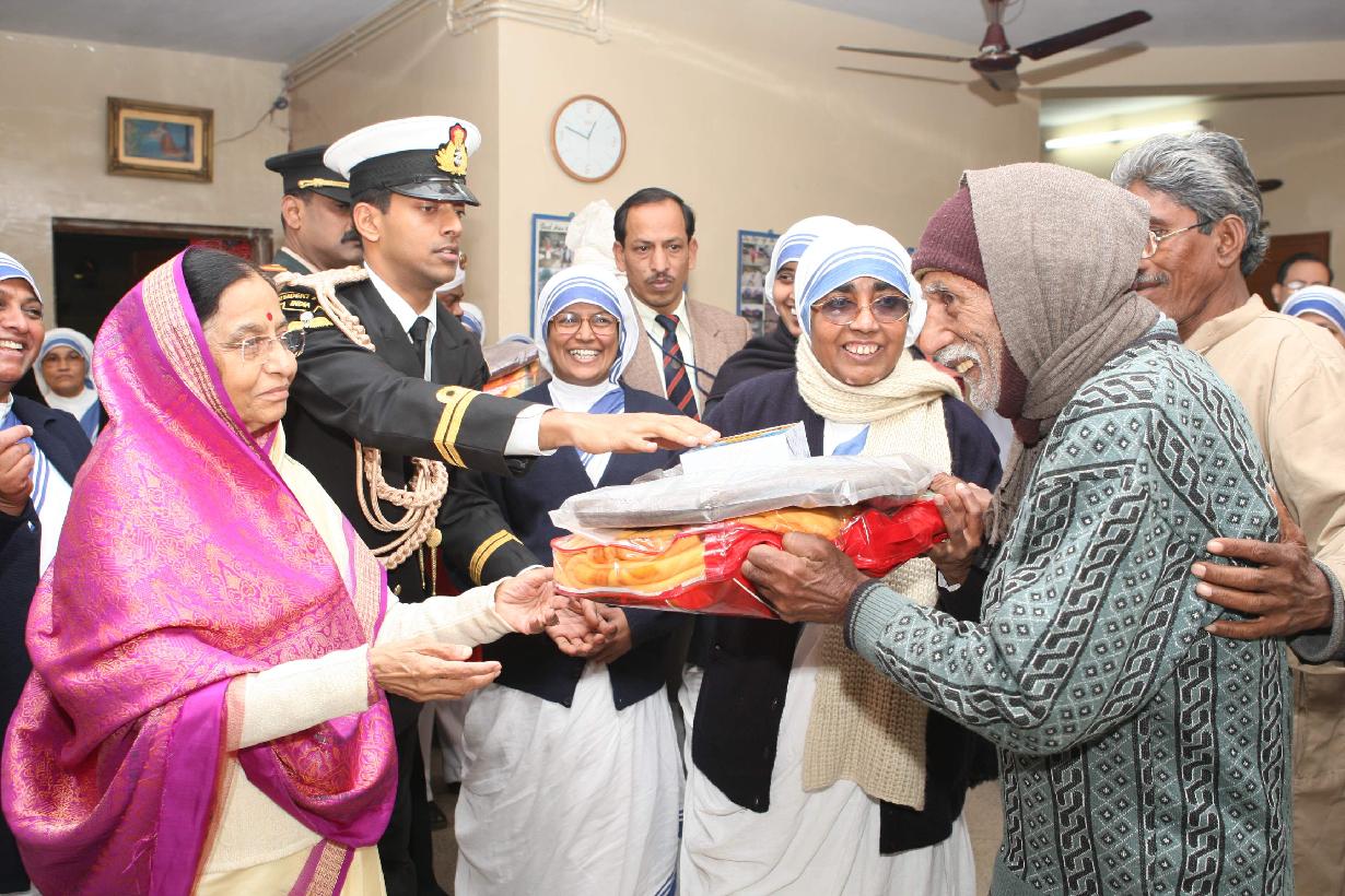 | Caption: | The President of India Smt Pratibha Devisingh Patil during the Distribution of Sweets and Blankets to the Old and Needy Persons of the Nirmal Hriday Home on the occasion of her Birth Anniversary in New Delhi on Dec 19, 2007 |