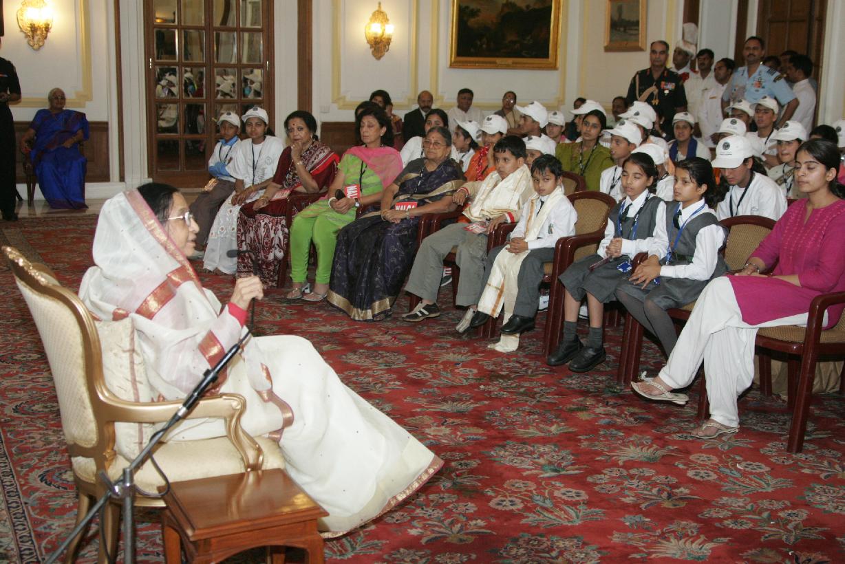 | Caption: | The President of India, Smt Pratibha Devisingh Patil interacting with the Children from Jammu & Kashmir, Gujarat, Assam & Andhra Pradesh on the occasion of Children Day at Rashtrapati Bhavan in New Delhi on Nov 14, 2007 |