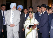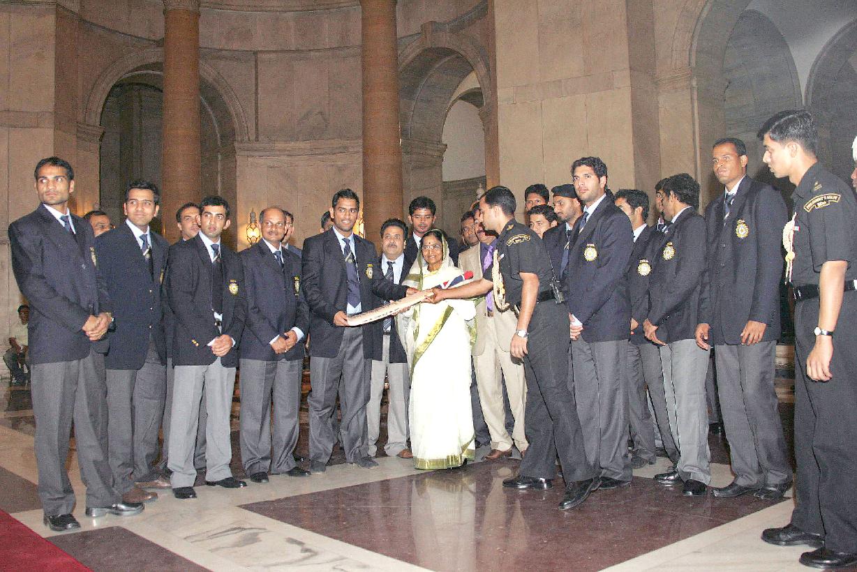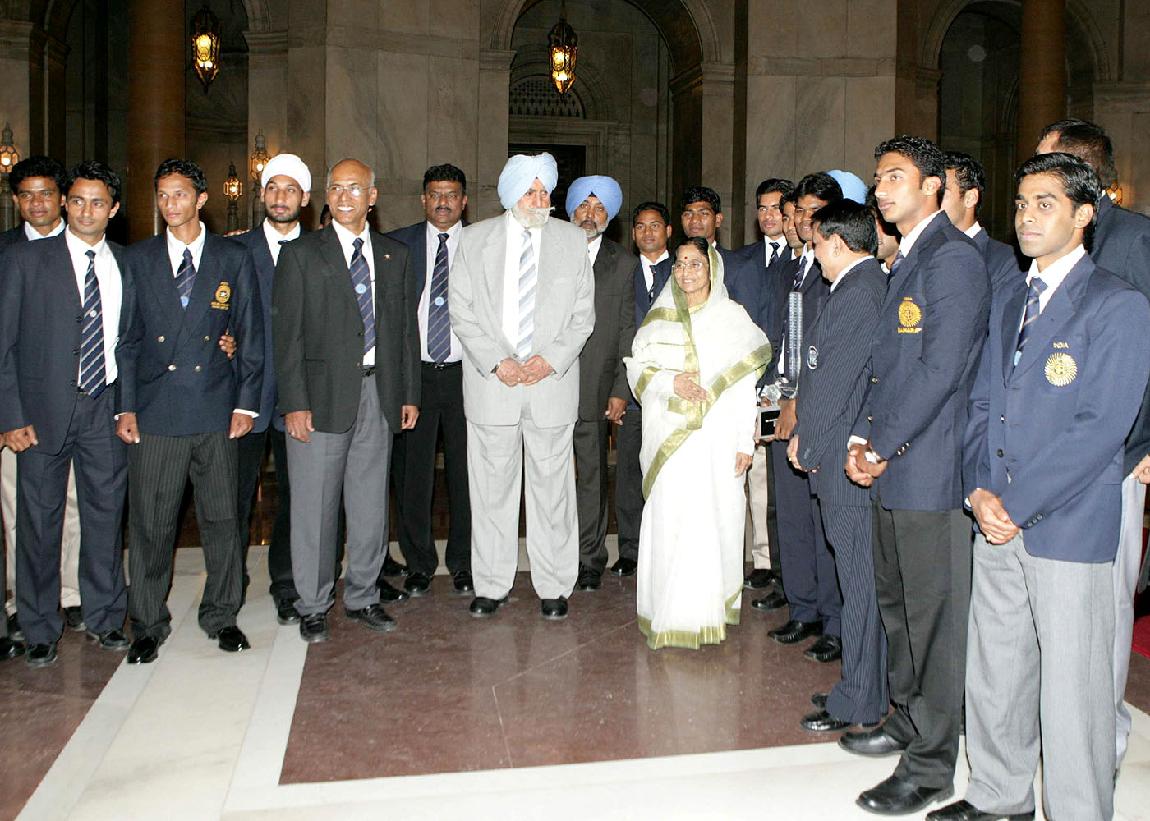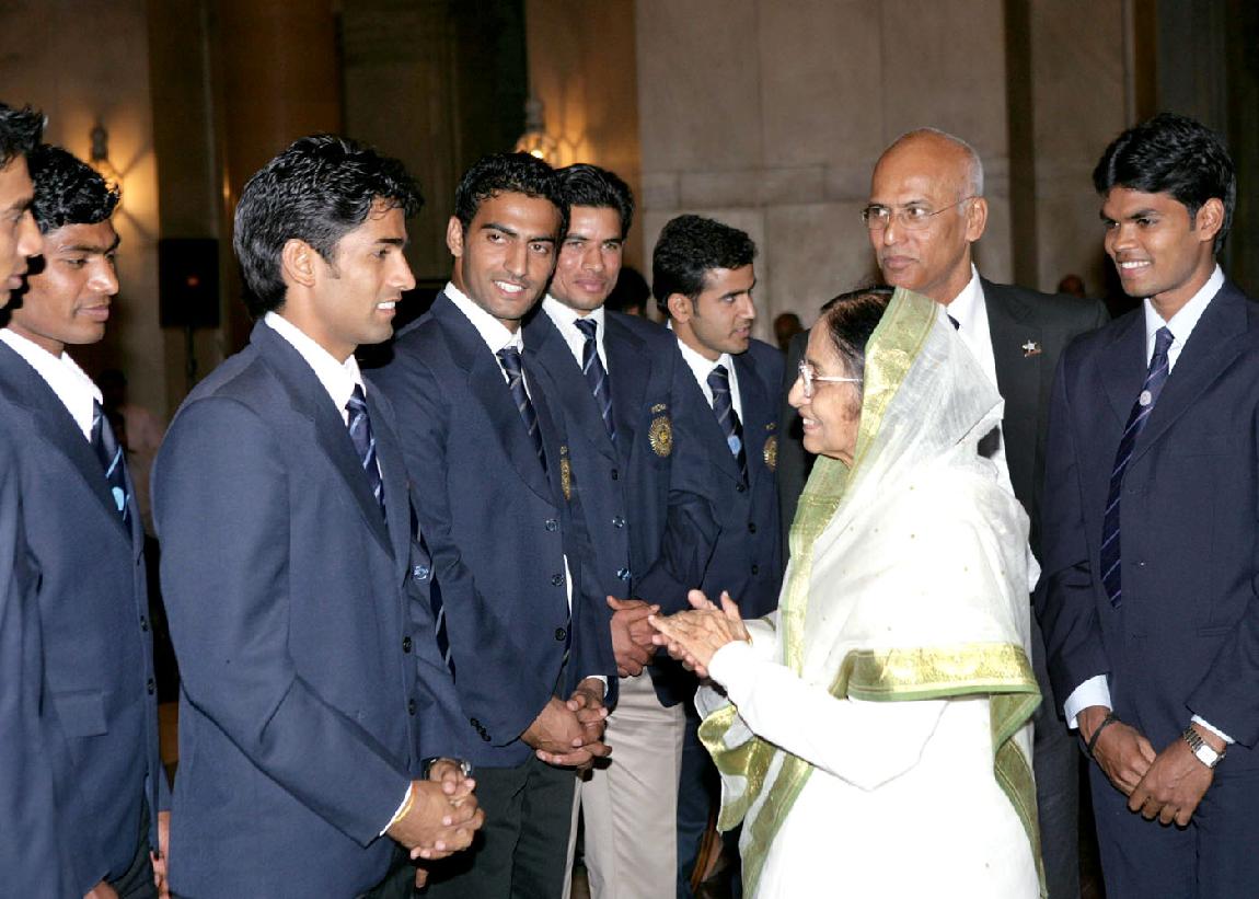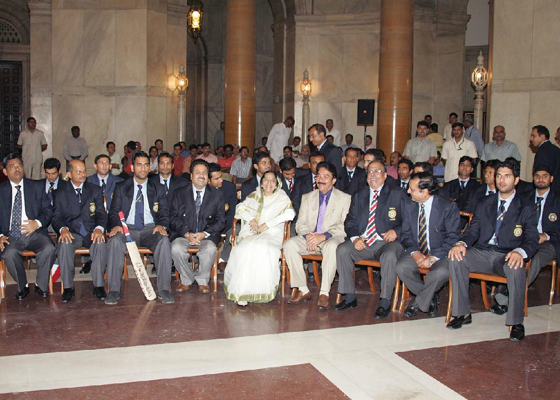| Caption: | The President of India, Smt Pratibha Devisingh Patil interacting with the National Cricket and Hockey Team at Rashtrapati Bhavan in New Delhi on Oct 30, 2007 |