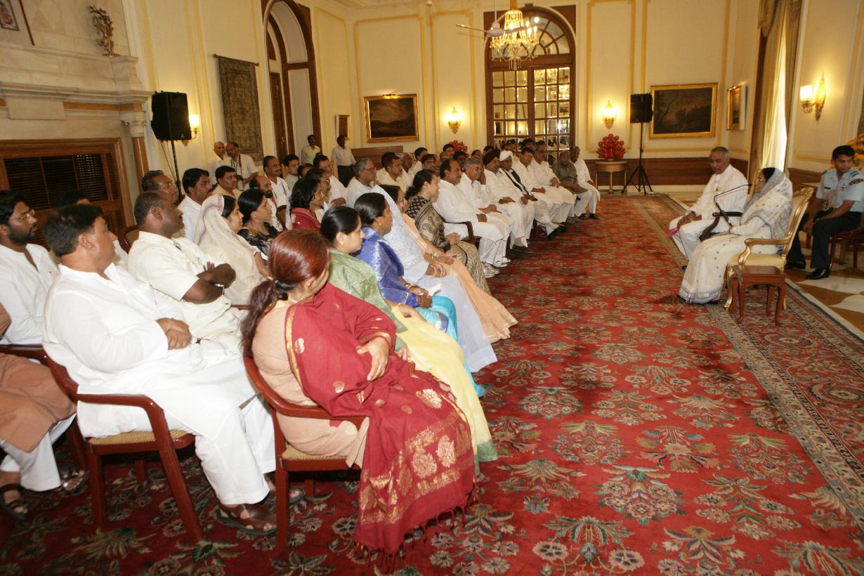 | Caption: | The Delegation from Madhya Pradesh Congress Committee, Bhopal calling on the President of India, Smt Pratibha Devisingh Patil at Yellow Drawing Room of Rashtrapati Bhavan in New Delhi on Aug 11, 2007 |