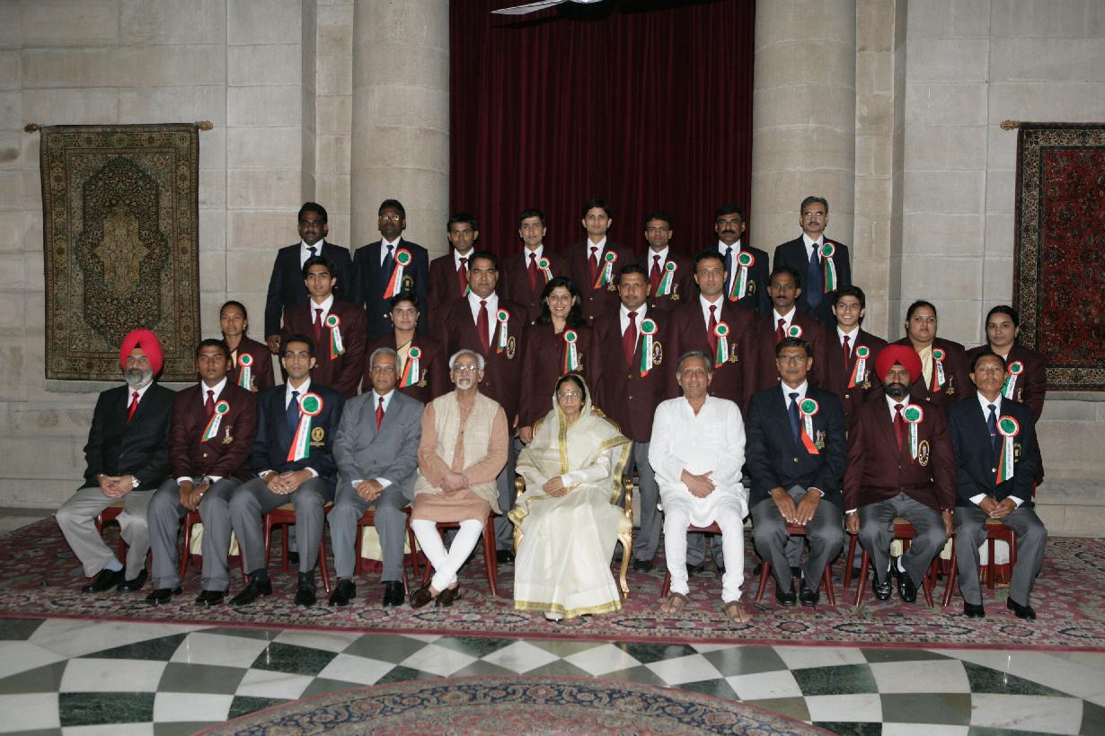 | Caption: | The President of India, Smt Pratibha Devisingh Patil presenting the Rajiv Gandhi Khel Awards, Dronacharya Awards, Arjun Awards, Dhyanchand Awards, Tenzing Norgay National Adventure Awards and Maulana Abul Kalam Azad Trophy at Ashok Hall of Rashtrapati Bhavan in New Delhi on Aug 29, 2007 |