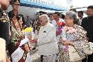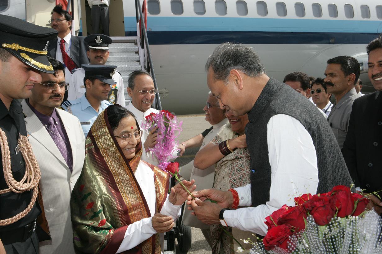 | Caption: | The President of India, Smt Pratibha Devisingh Patil being welcomed by the Governor of Rajasthan, Shri S K Singh at Jaipur Airport in Rajasthan on March 05, 2009 |
