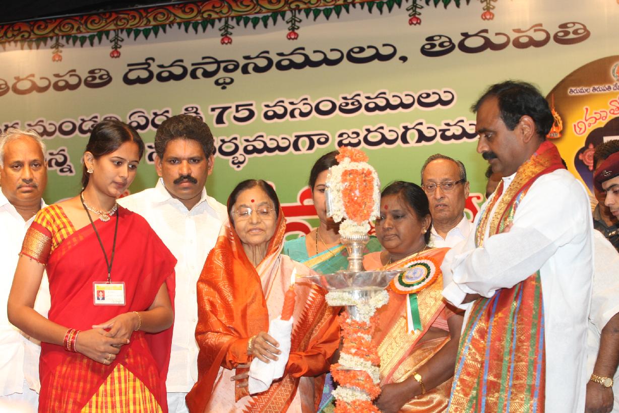 | Caption: | The President of India, Smt Pratibha Devisingh Patil inaugurating the Amrutotsavam at Tirupati in Andhra Pradesh on July 07, 2008 |