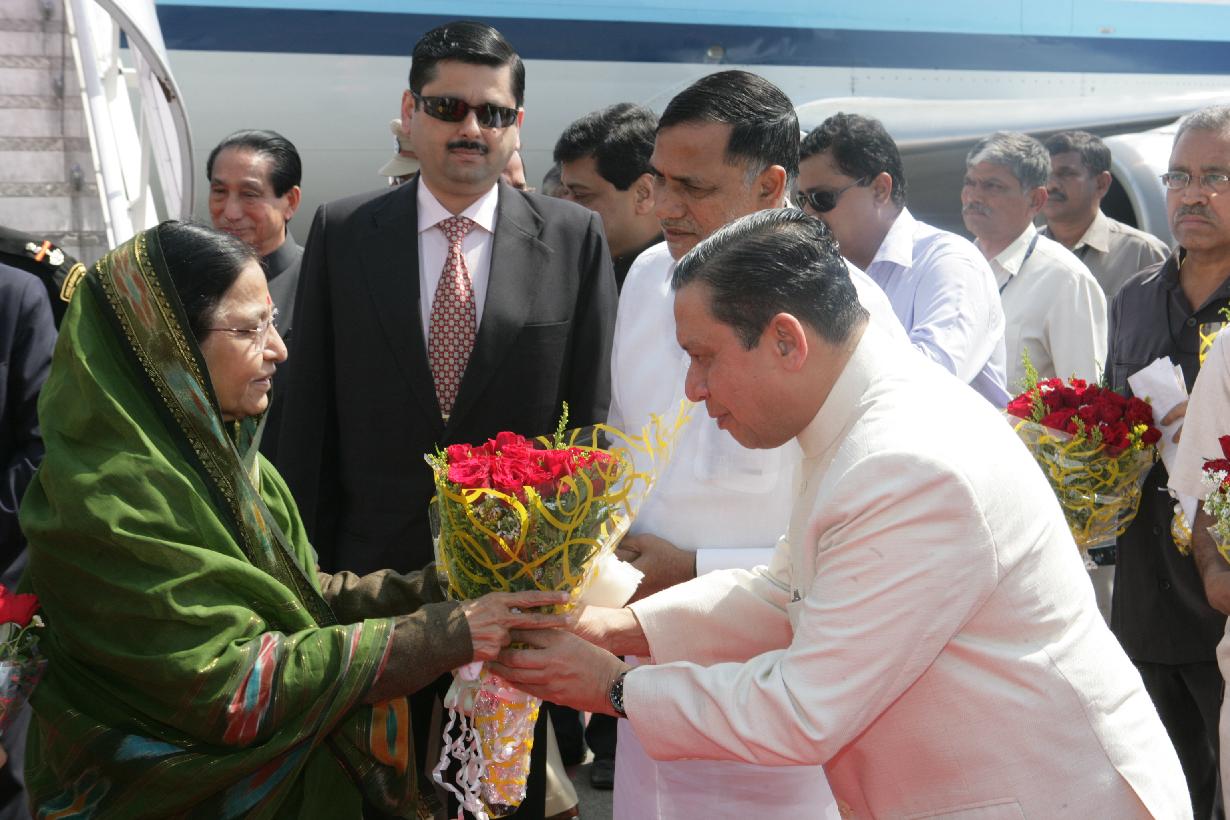 | Caption: | The President of India, Smt Pratibha Devisingh Patil being welcomed by the Governor of Maharashtra, Shri S C Jamir and Chief Minister of Maharashtra, Shri Ashok Chavan at Chhatrapati Shivaji International Airport of Mumbai in Maharashtra on Feb 07, 2009 |