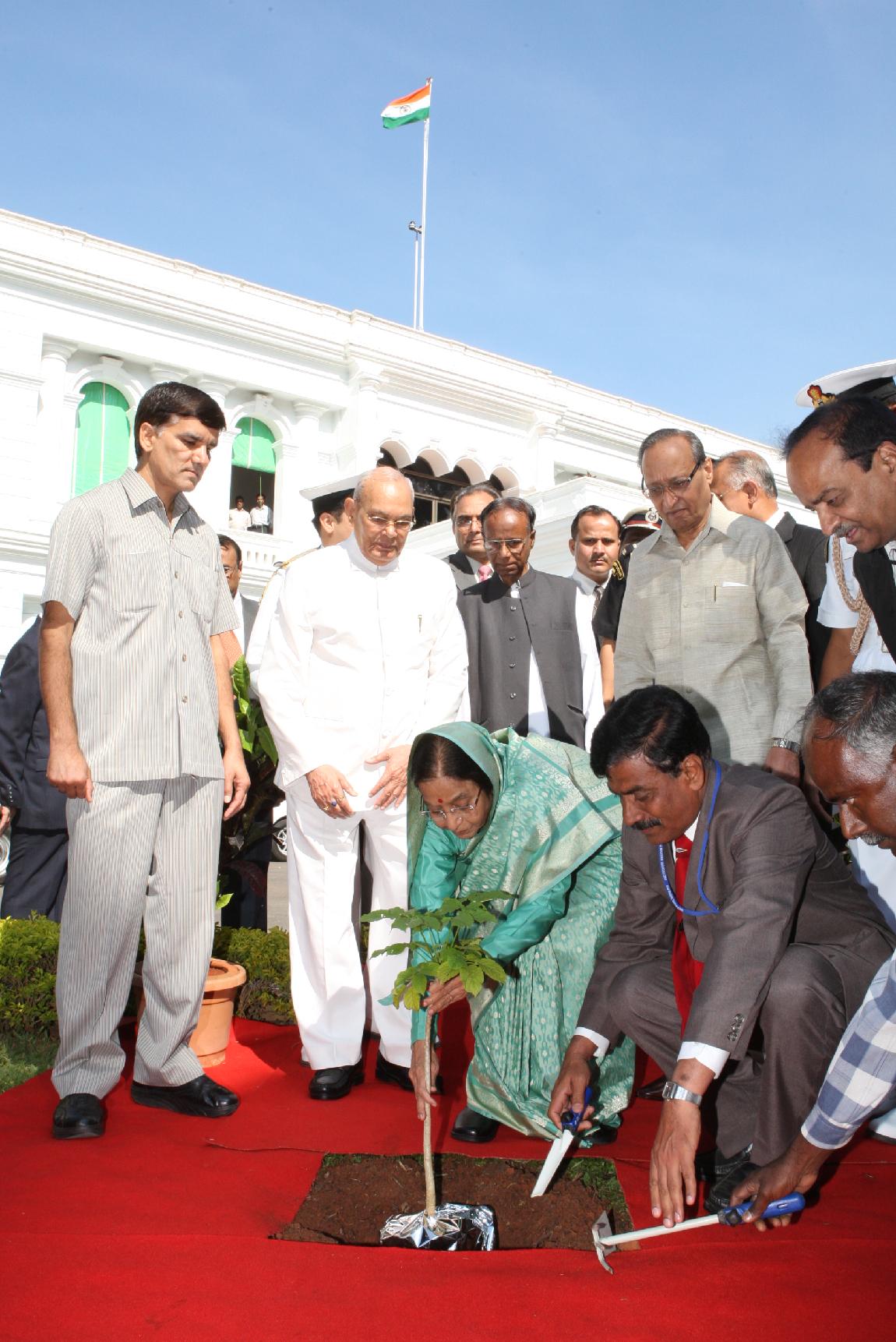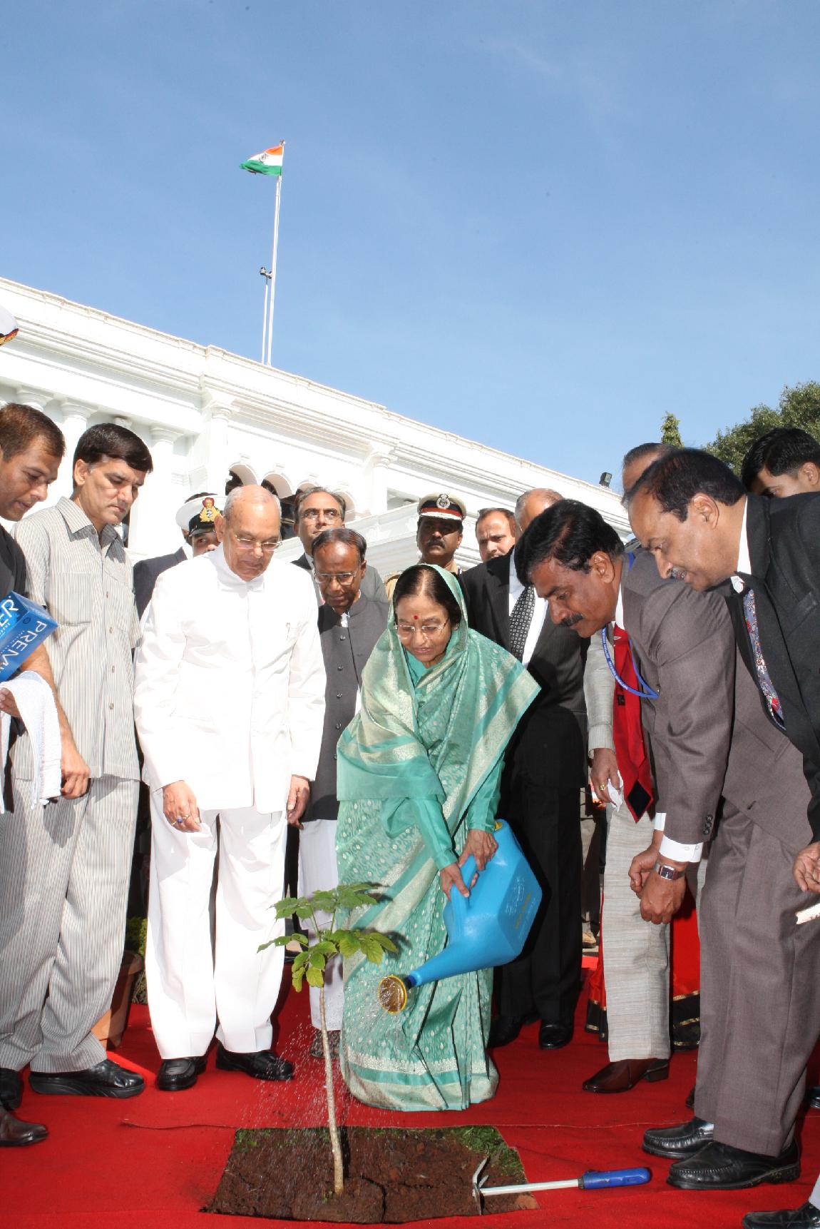 | Caption: | The President of India, Smt Pratibha Devisingh Patil planting the Plant at Bangalore Raj Bhavan in Karnataka on Nov 12, 2008 |