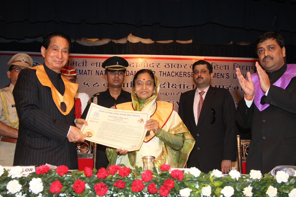 | Caption: | The President of India, Smt Pratibha Devisingh Patil during the Convocation of Shreemati Nathibai Damodar Thackersey Women University and also Paying floral tributes to Maharshi Karve and Chhatrapati Shivaji Maharaj at the 58th Convocation of Smt Nathibai Damodar Thakarsi Women's University at Mumbai in Maharashtra on Feb 07, 2009 |