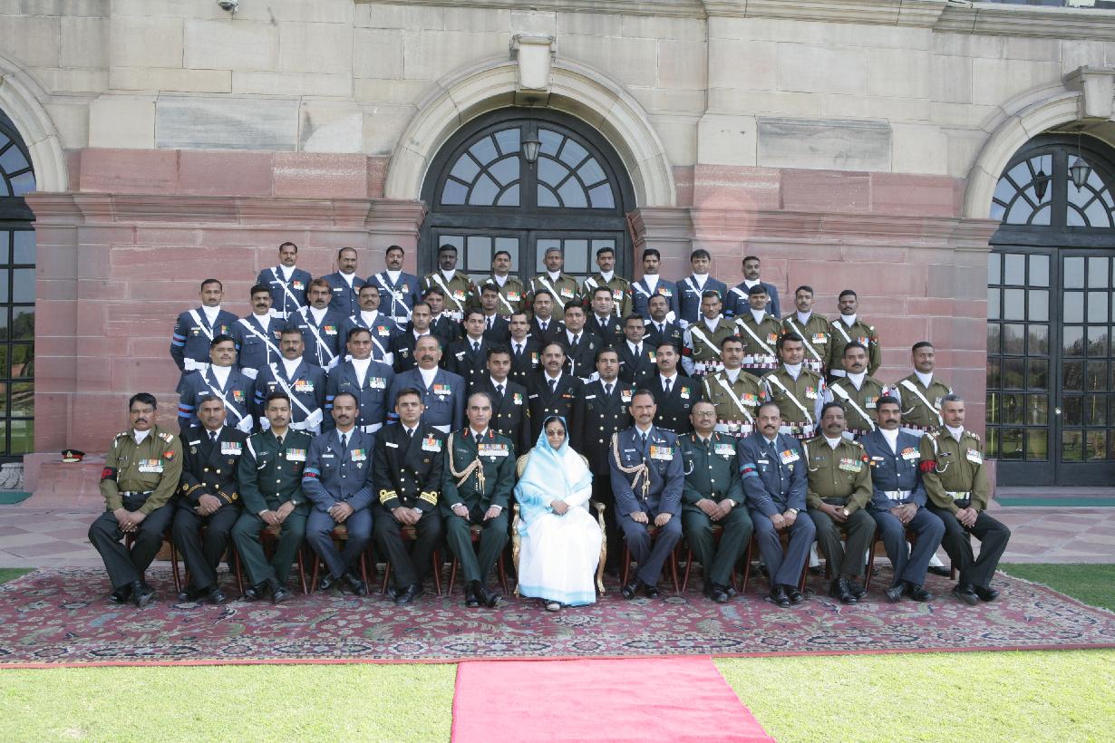 | Caption: | The President of India, Smt Pratibha Devisingh Patil posing for a Group Photo of Service Outriders at Rashtrapati Bhavan in New Delhi on Jan 30, 2009 |
