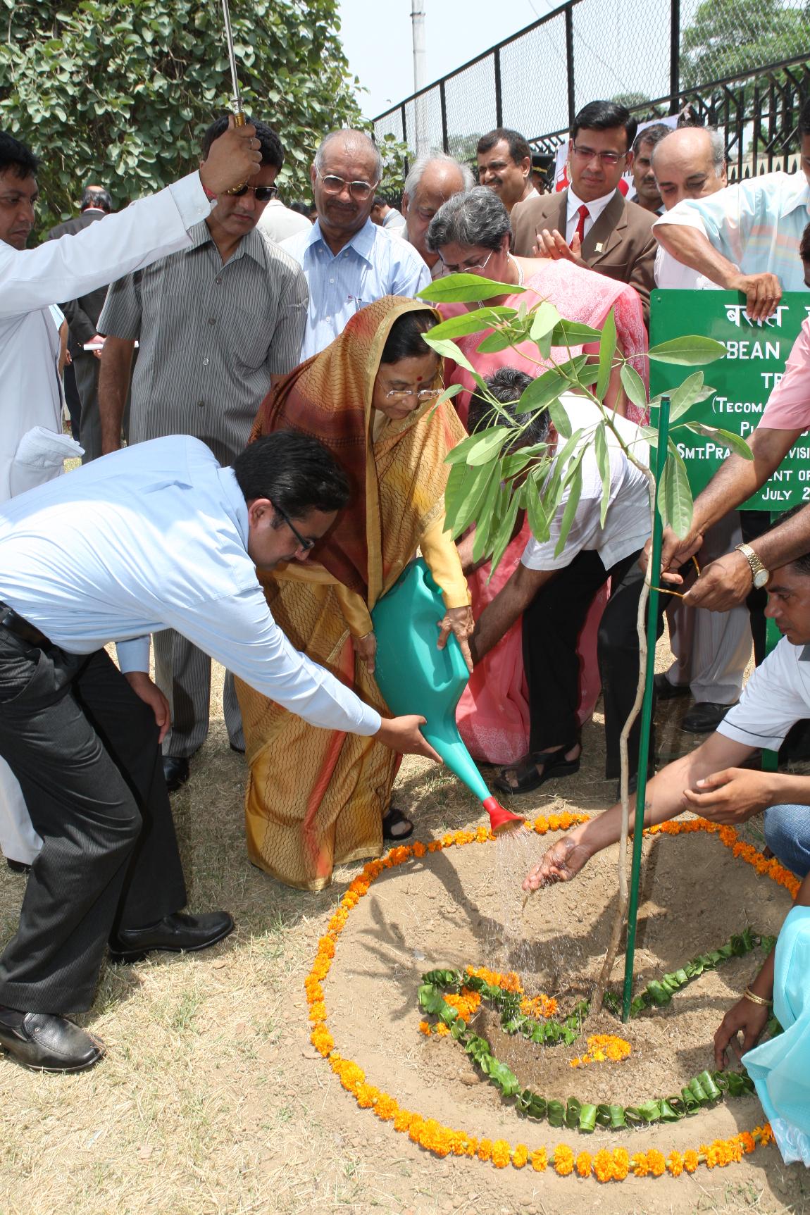 | Caption: | The President of India, Smt Pratibha Devisingh Patil planting trees at Dr Rajendra Prasad Sarvodaya Vidyalaya at Presidents Estate of Rashtrapati Bhavan in New Delhi on July 03, 2008 |
