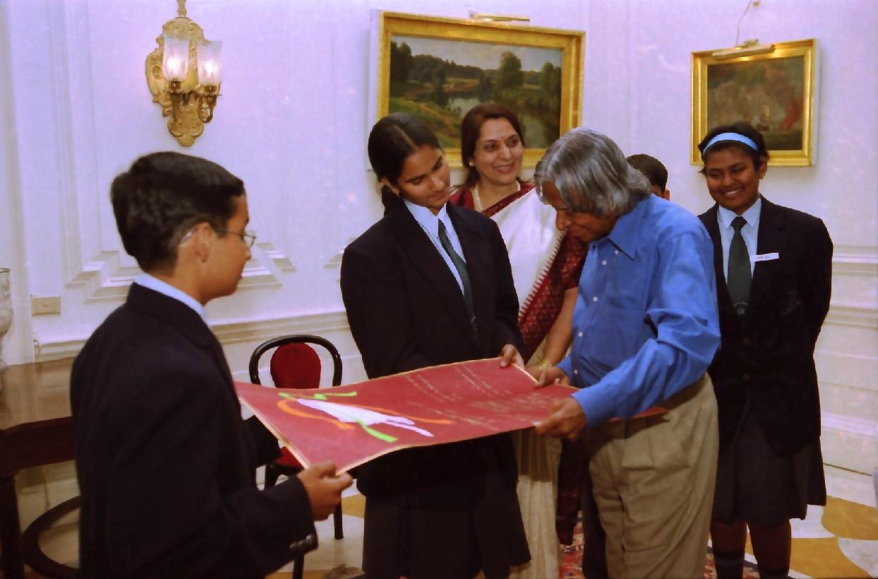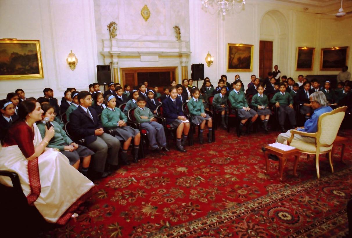 | Caption: | The Student from Colonel's Academuy Mhow, Madhya Pradesh calling on the President of India, Dr A P J Abdul Kalam at the Yellow Drawing Room of Rashtrapati Bhavan in New Delhi on Nov 11, 2003 |