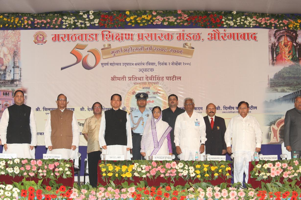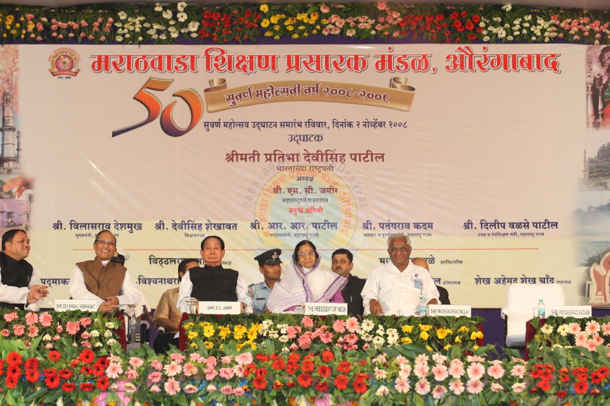 | Caption: | The President of India, Smt Pratibha Devisingh Patil inaugurating the Golden Jubilee Marathawada Shikshan Prasarak Mandal at Aurangabad in Maharashtra on Nov 02, 2008 |