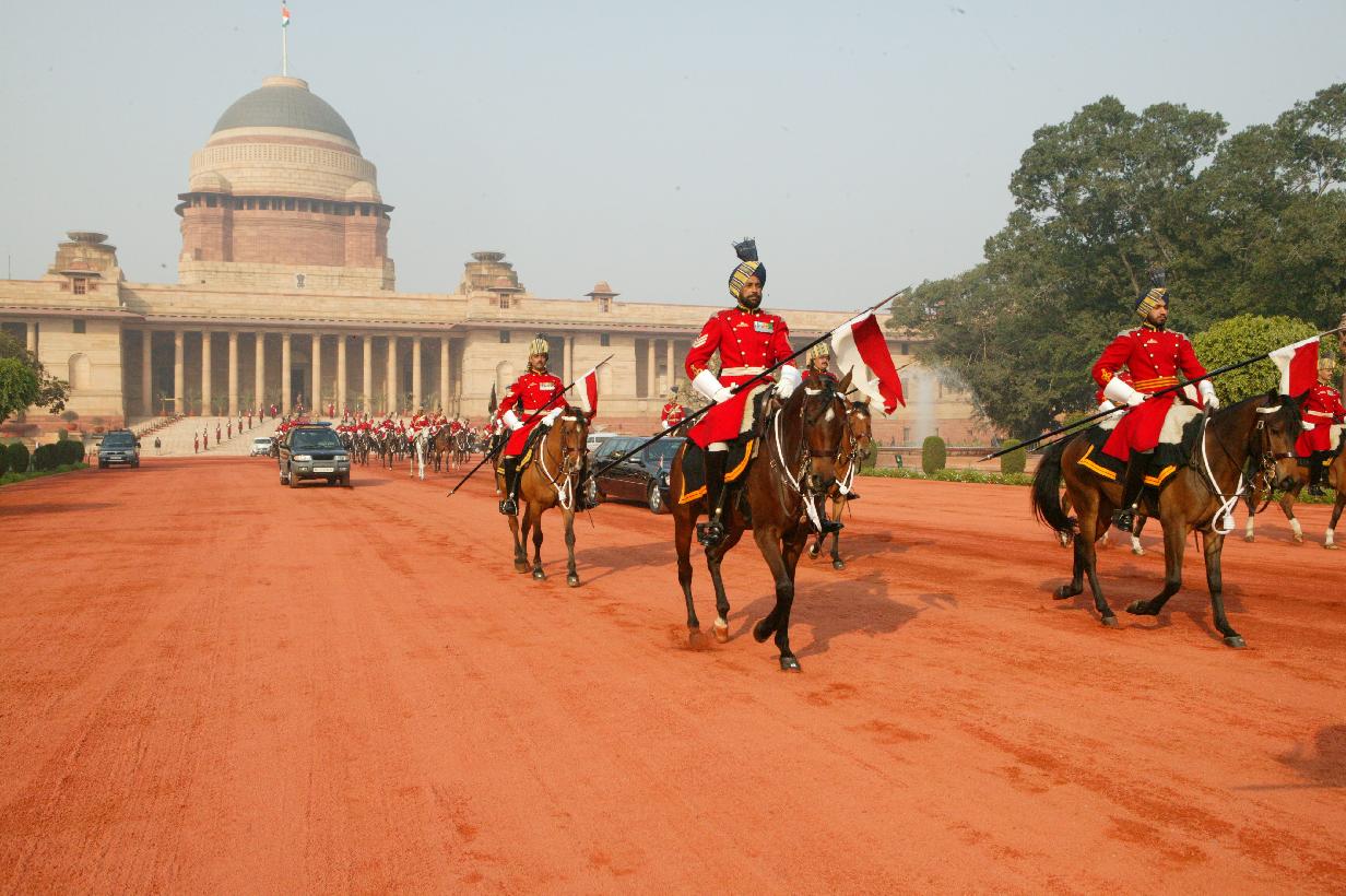 | Caption: | The Presidents Body Guards presenting the National Salute to the President of India, Smt Pratibha Devisingh Patil at Rashtrapati Bhavan in New Delhi on Jan 26, 2009 |
