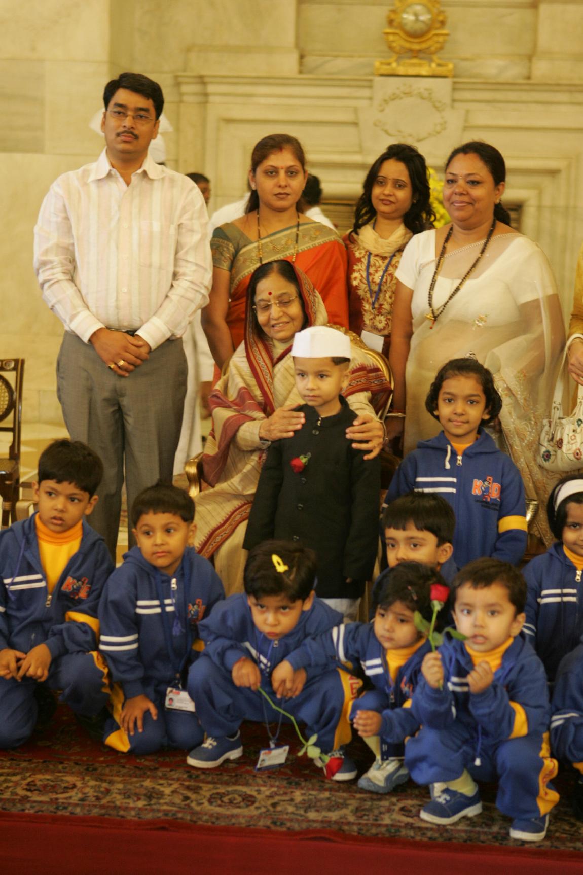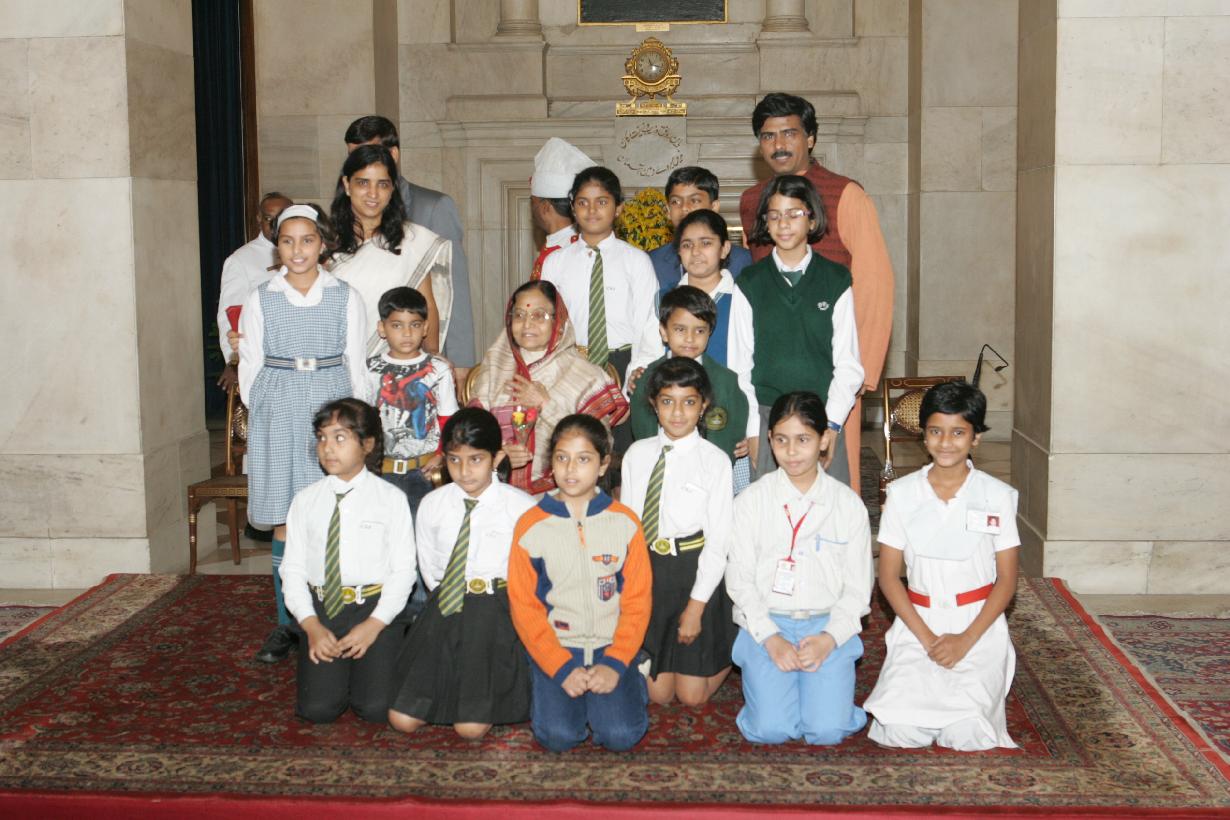 | Caption: | The President of India, Smt Pratibha Devisingh Patil posing for a Group Photograph with various students on the occasion of Children Day at Rashtrapati Bhavan in New Delhi on Nov 14, 2008 |