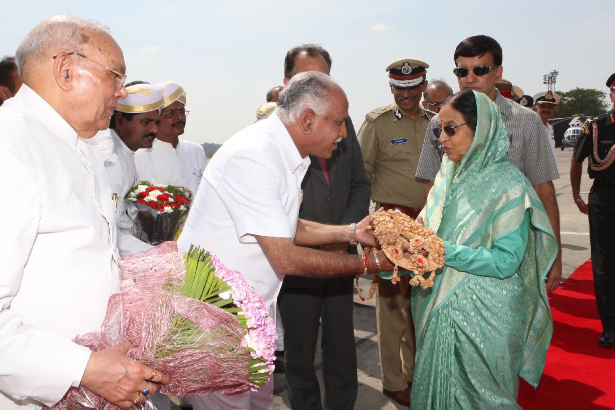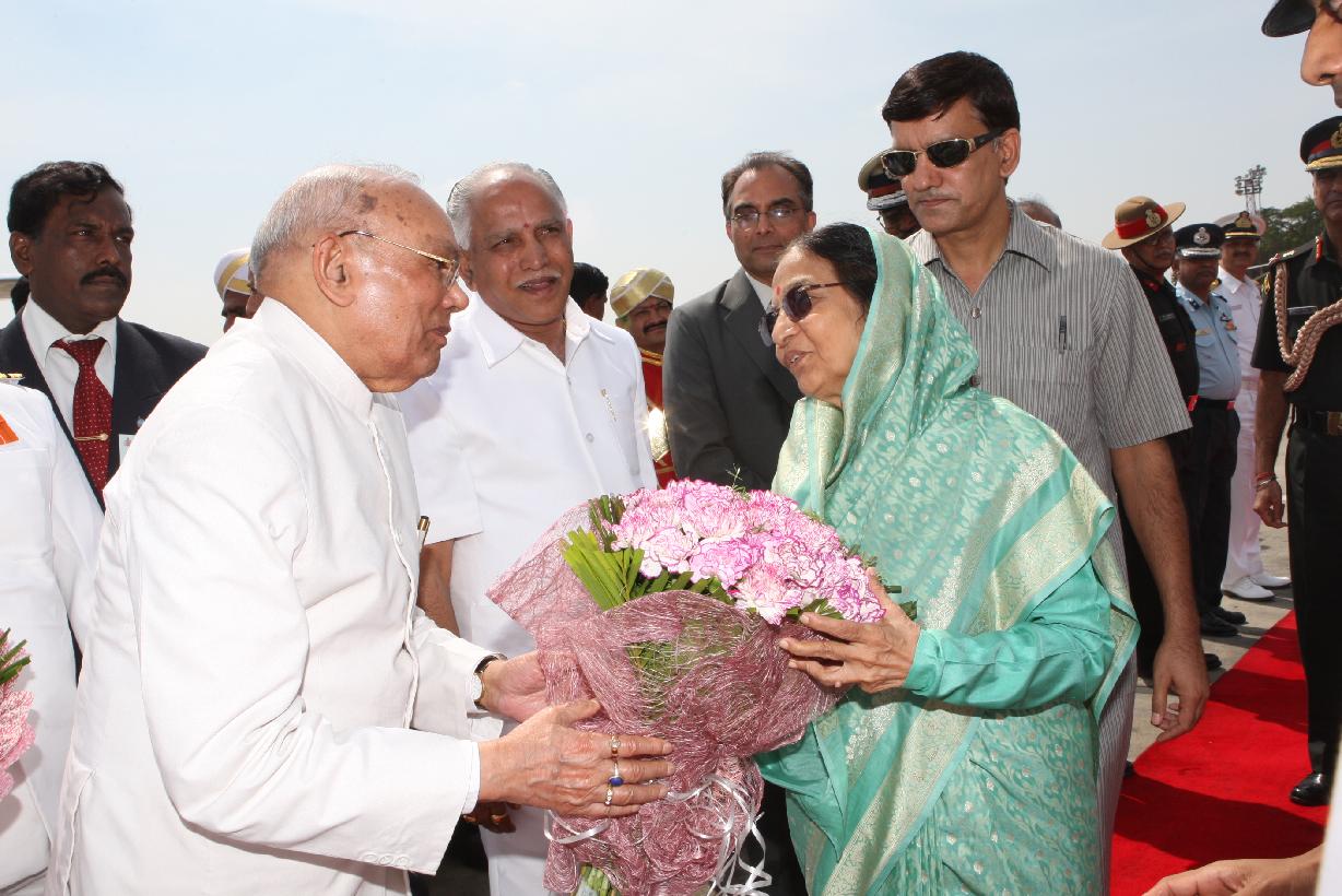 | Caption: | The President of India, Smt Pratibha Devisingh Patil before departure from Bangalore Airport in Karnataka on Nov 12, 2008 |