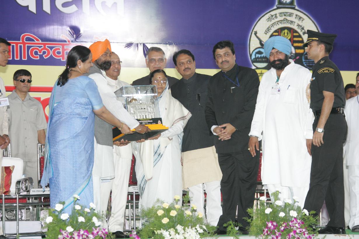 | Caption: | The President of India, Smt Pratibha Devisingh Patil during the Civic Reception Honour by the Nanded Waghala City Municipal Corporation at Nanded in Maharashtra on Nov 03, 2008 |