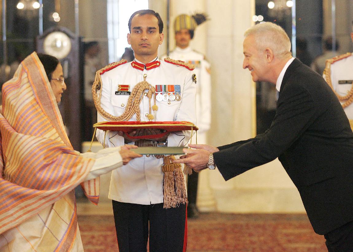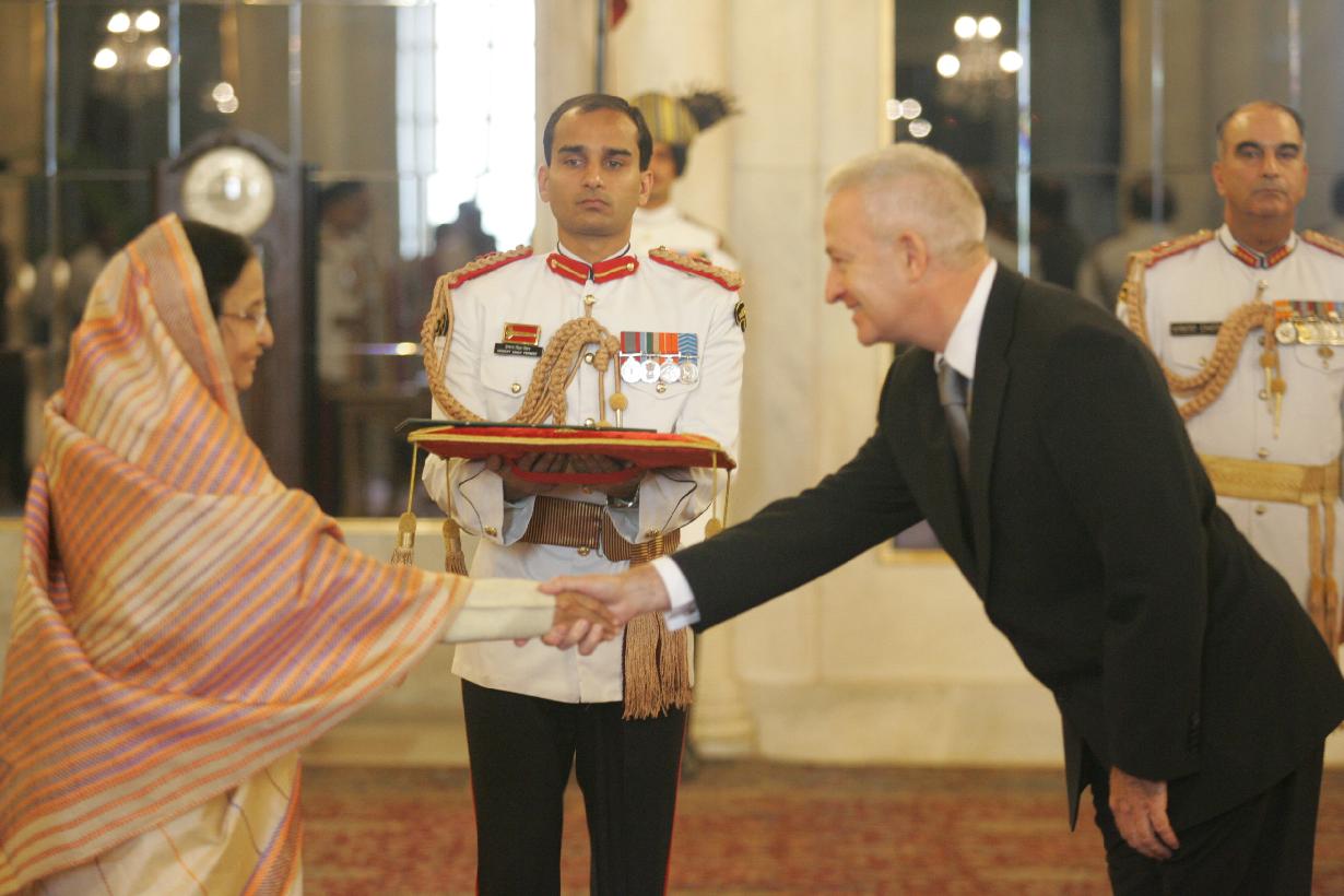 | Caption: | The Ambassador-Designate of Ireland to India, HE Mr Kenneth Thompson presenting his credential to the President of India, Smt Pratibha Devisingh Patil at Rashtrapati Bhavan in New Delhi on Nov 10, 2008 |