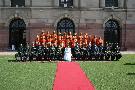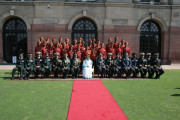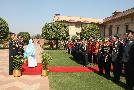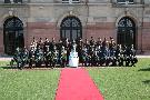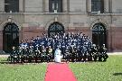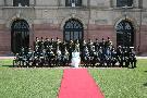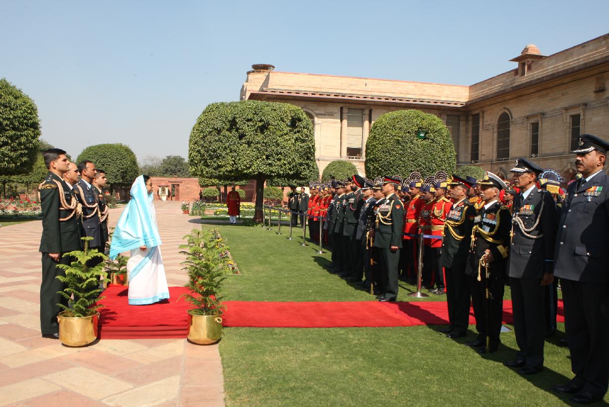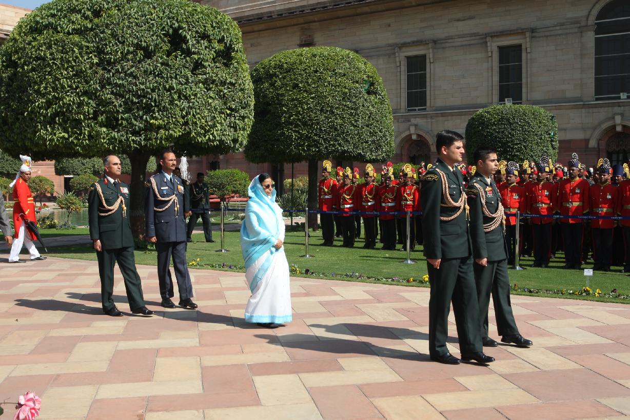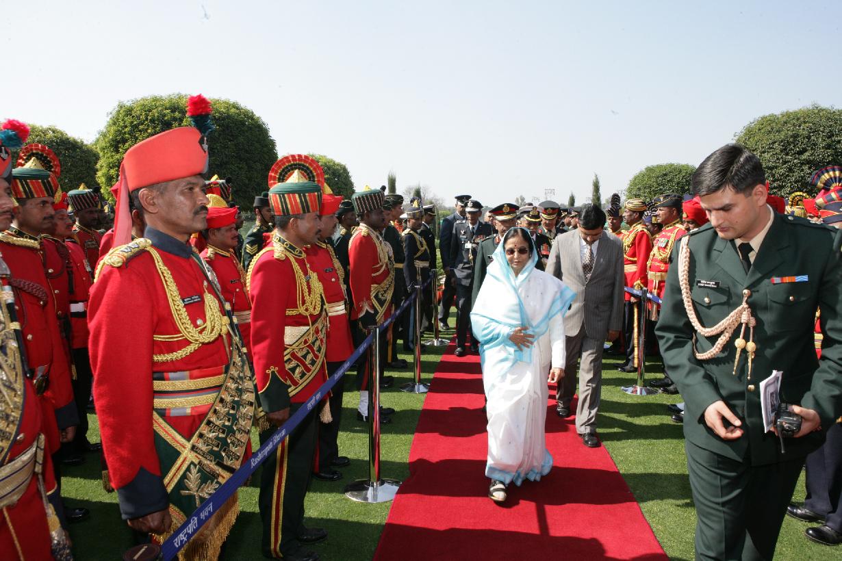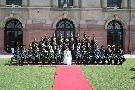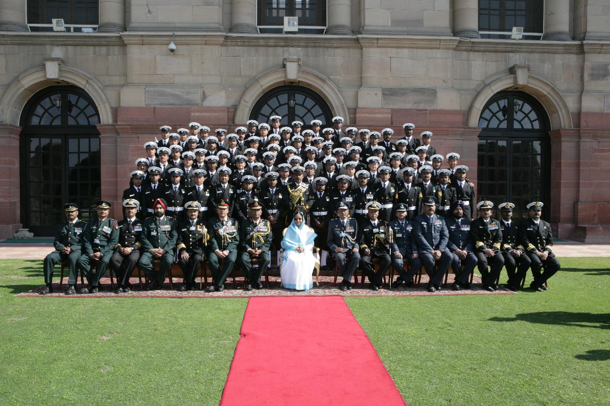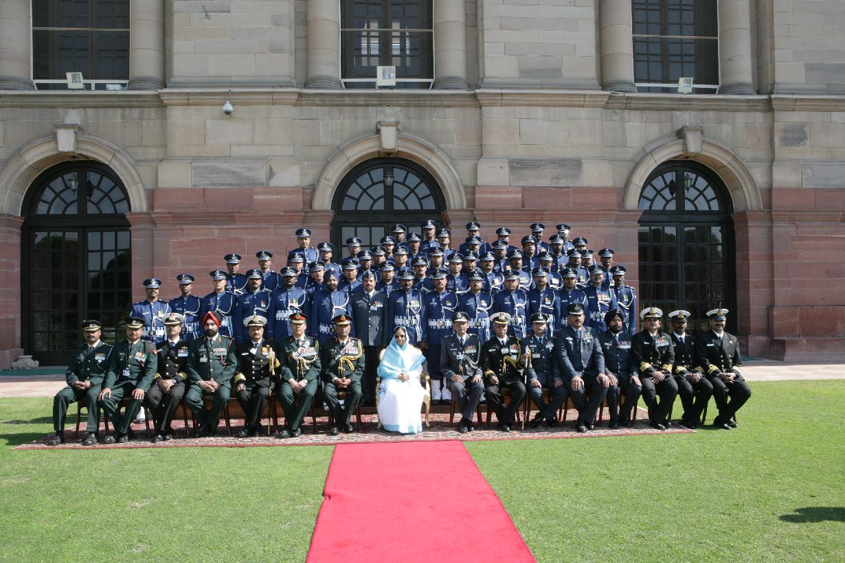 | Caption: | The President of India, Smt Pratibha Devisingh Patil posing for a Group Photo with Tri Service Band Contingents at Rashtrapati Bhavan in New Delhi on Jan 30, 2009 |