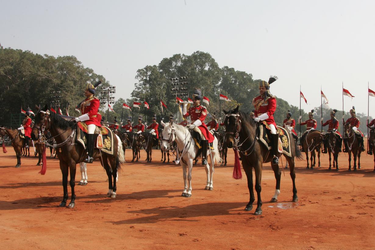 | Caption: | The PBG presenting the National Salute to the President of India, Smt Pratibha Devisingh Patil at Rashtrapati Bhavan in New Delhi on Feb 25, 2008 |