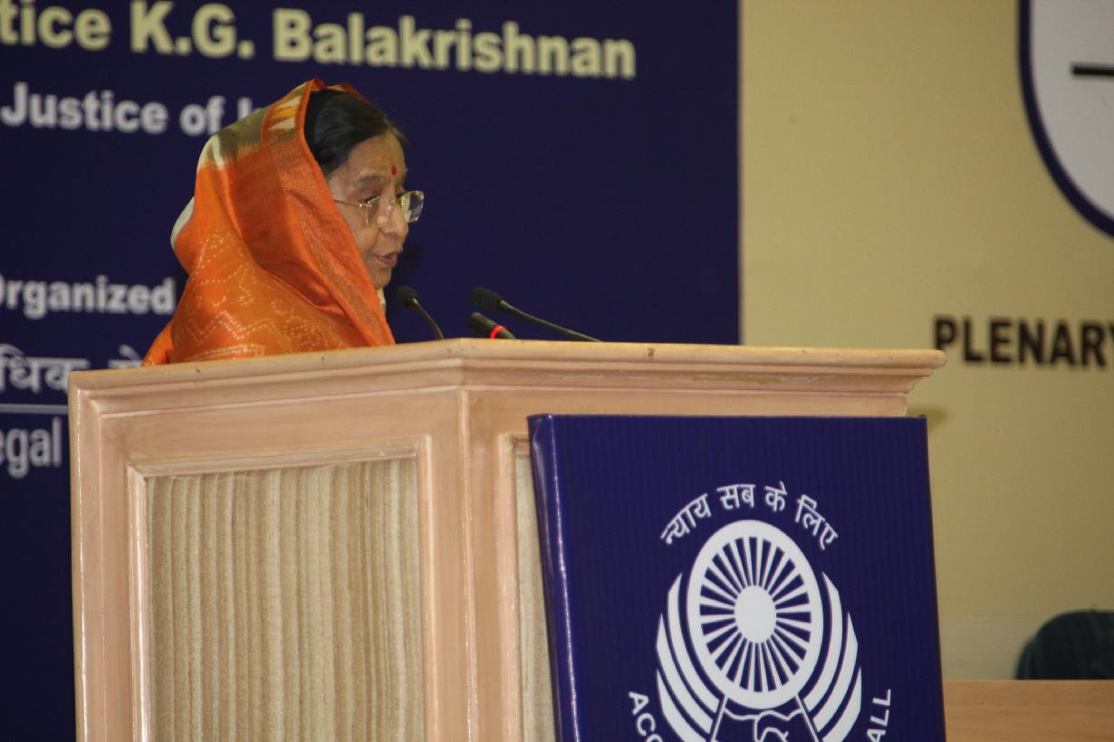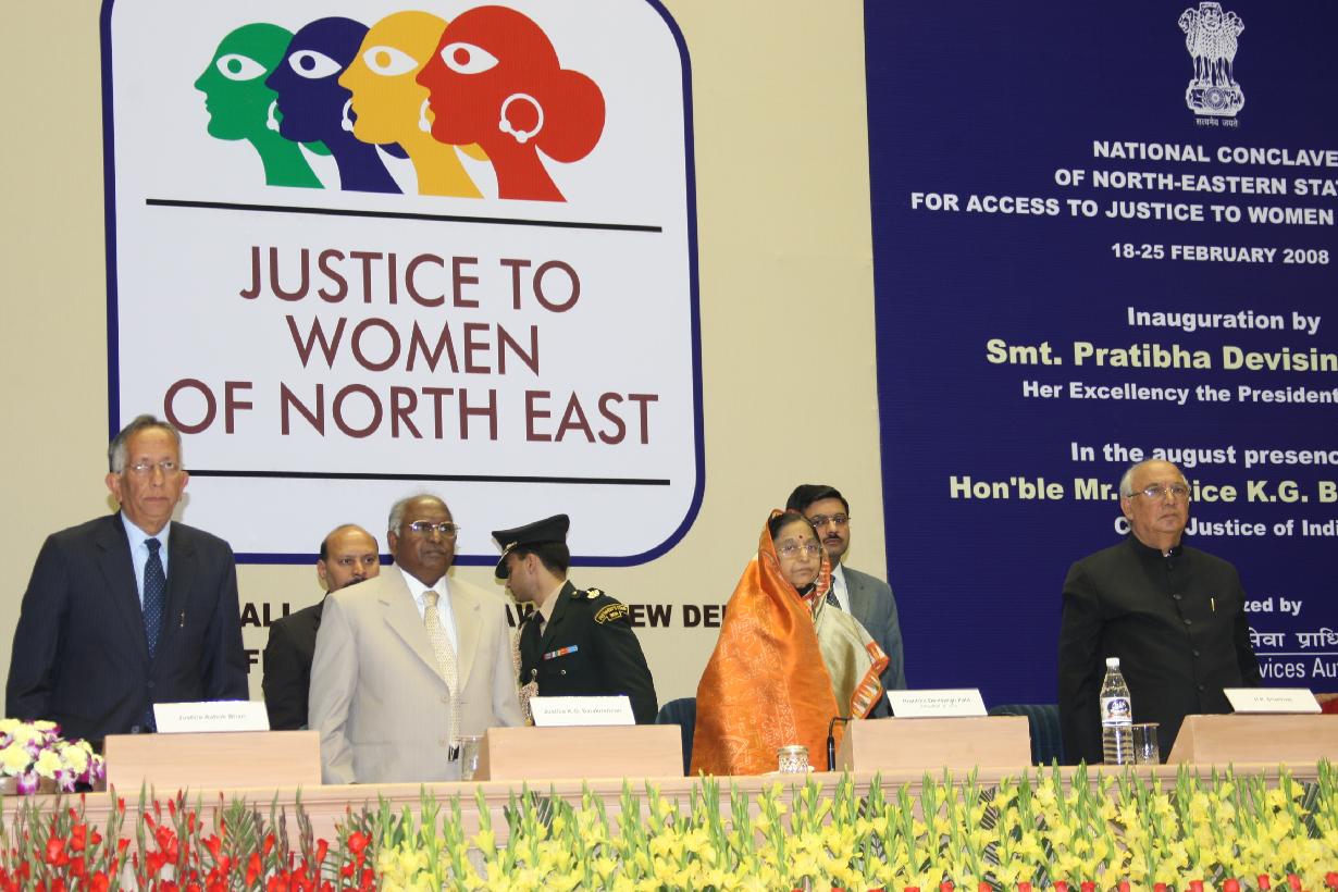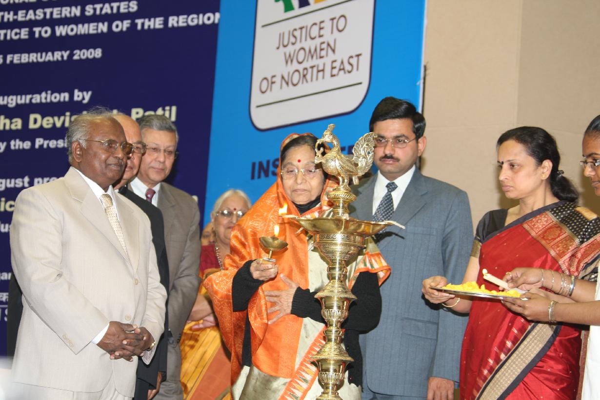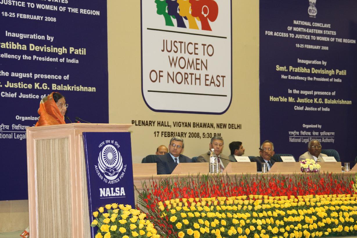 | Caption: | The President of India, Smt Pratibha Devisingh Patil during the 'National Conclave of North Eastern States for Access to Justice to Women of the Region' at Vigyan Bhavan in New Delhi on Feb 17, 2008 |