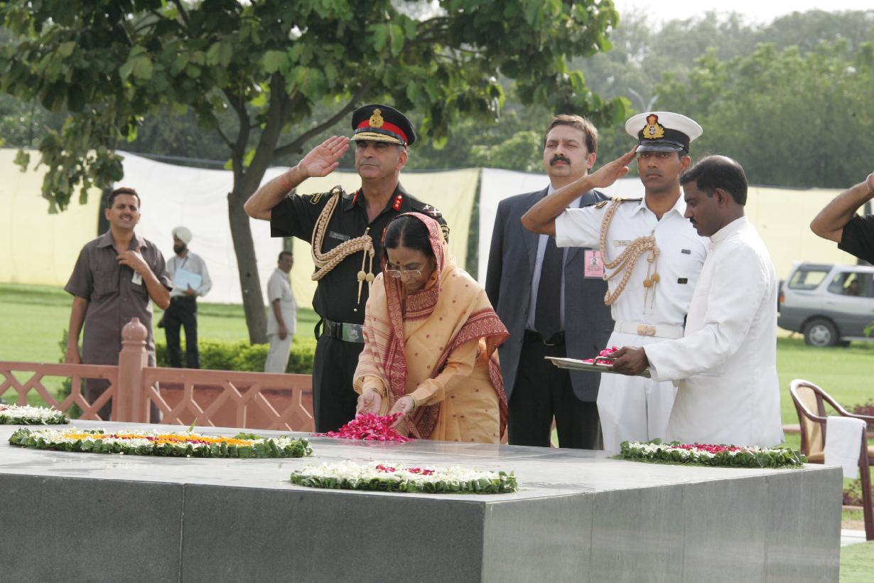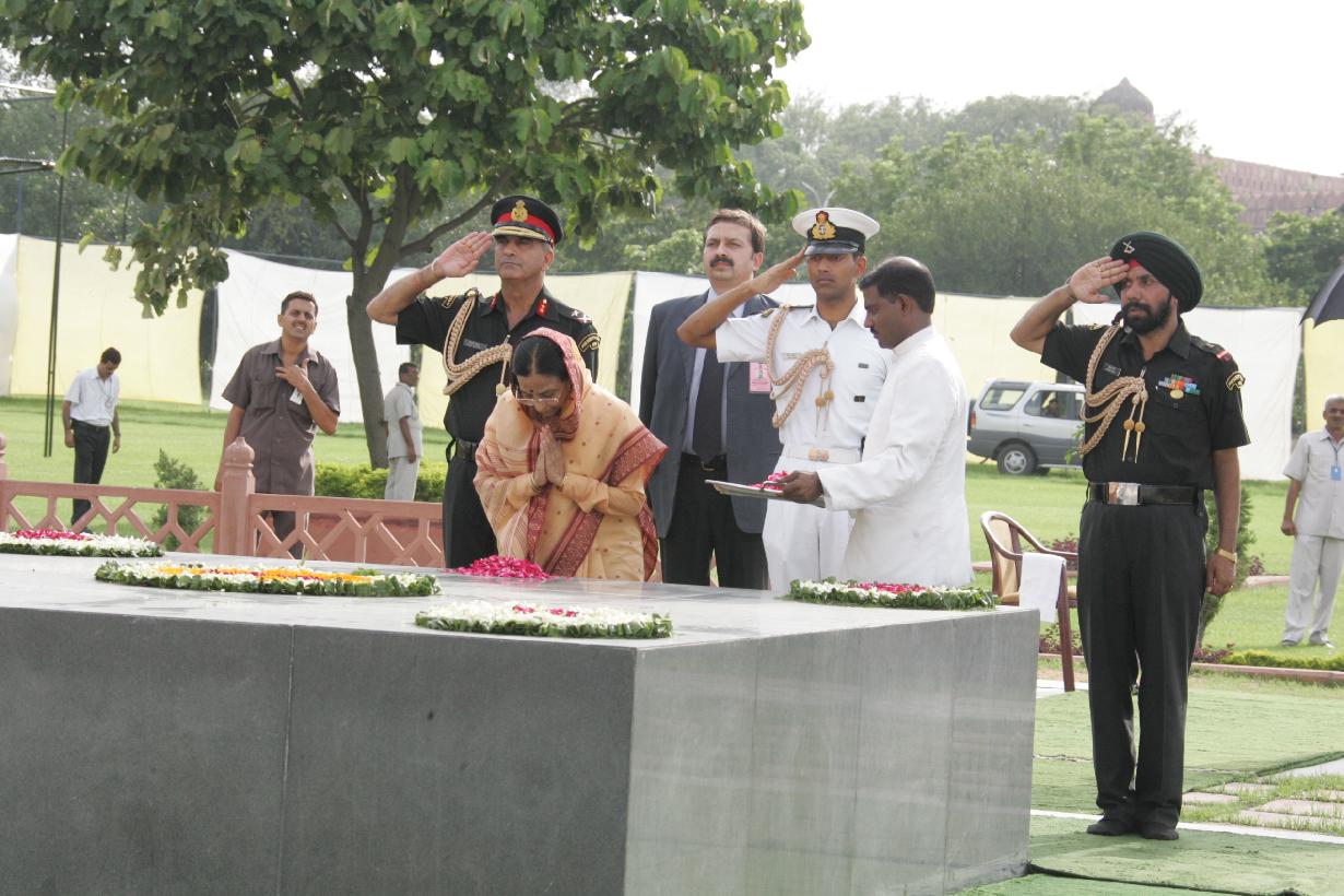 | Caption: | The President of India, Smt Pratibha Devisingh Patil paying tributes at the Samadhi of Shankar Dham in New Delhi on July 26, 2007 |