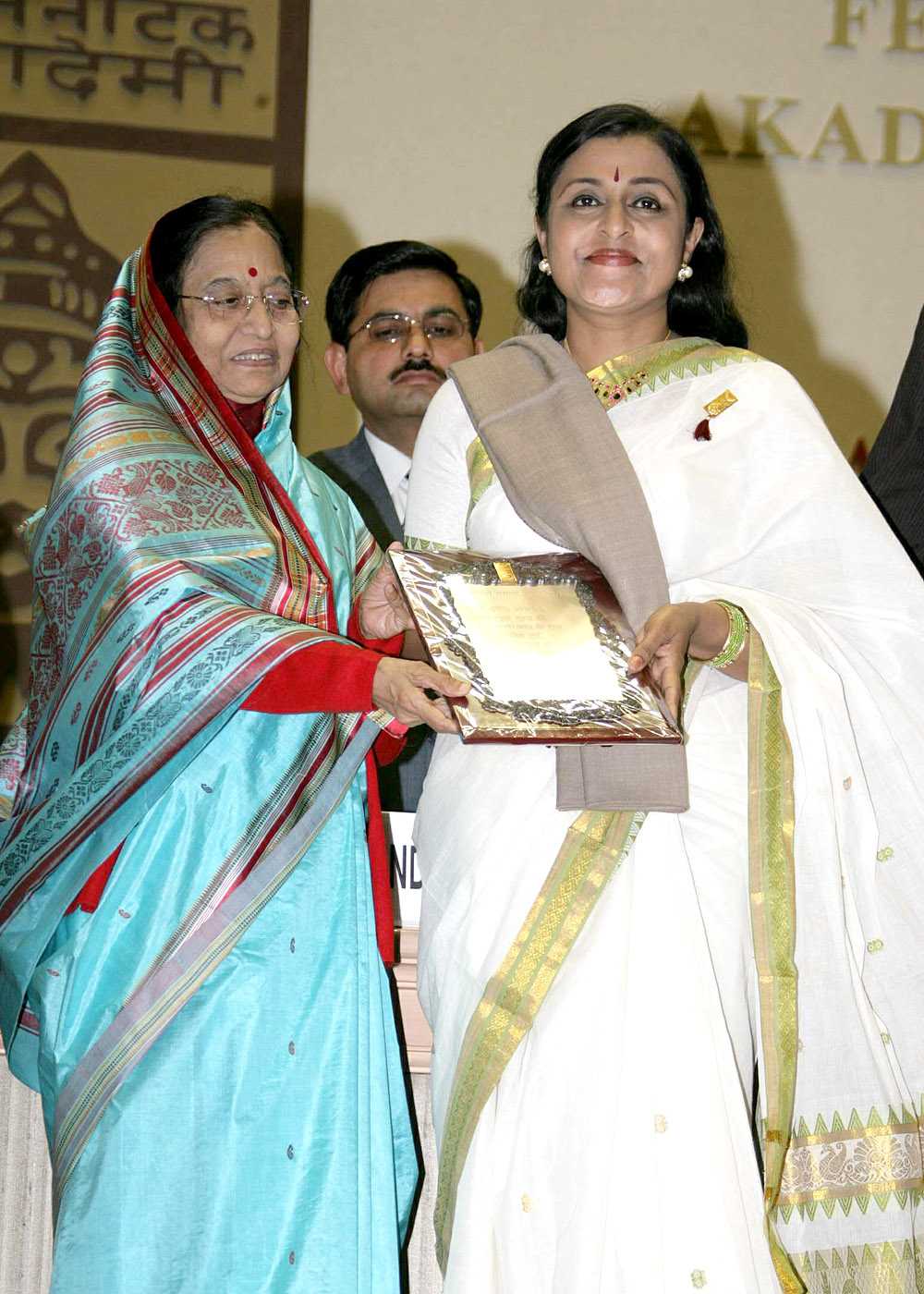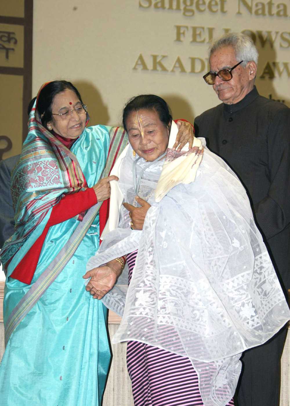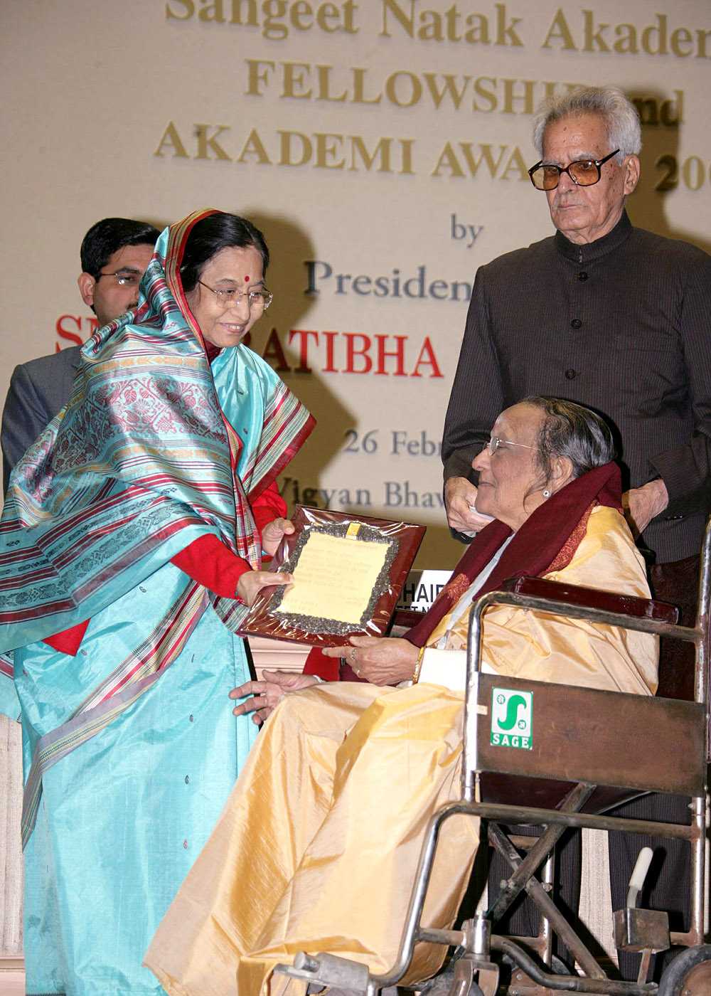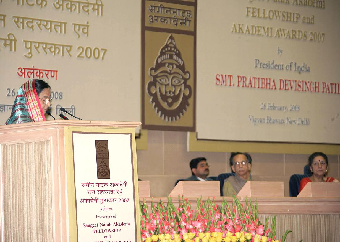 | Caption: | The President of India, Smt Pratibha Devisingh Patil presenting the Sangeet Natak Akademi Fellowship Awards for year 2007 at Vigyan Bhavan in New Delhi on Feb 26, 2008 |