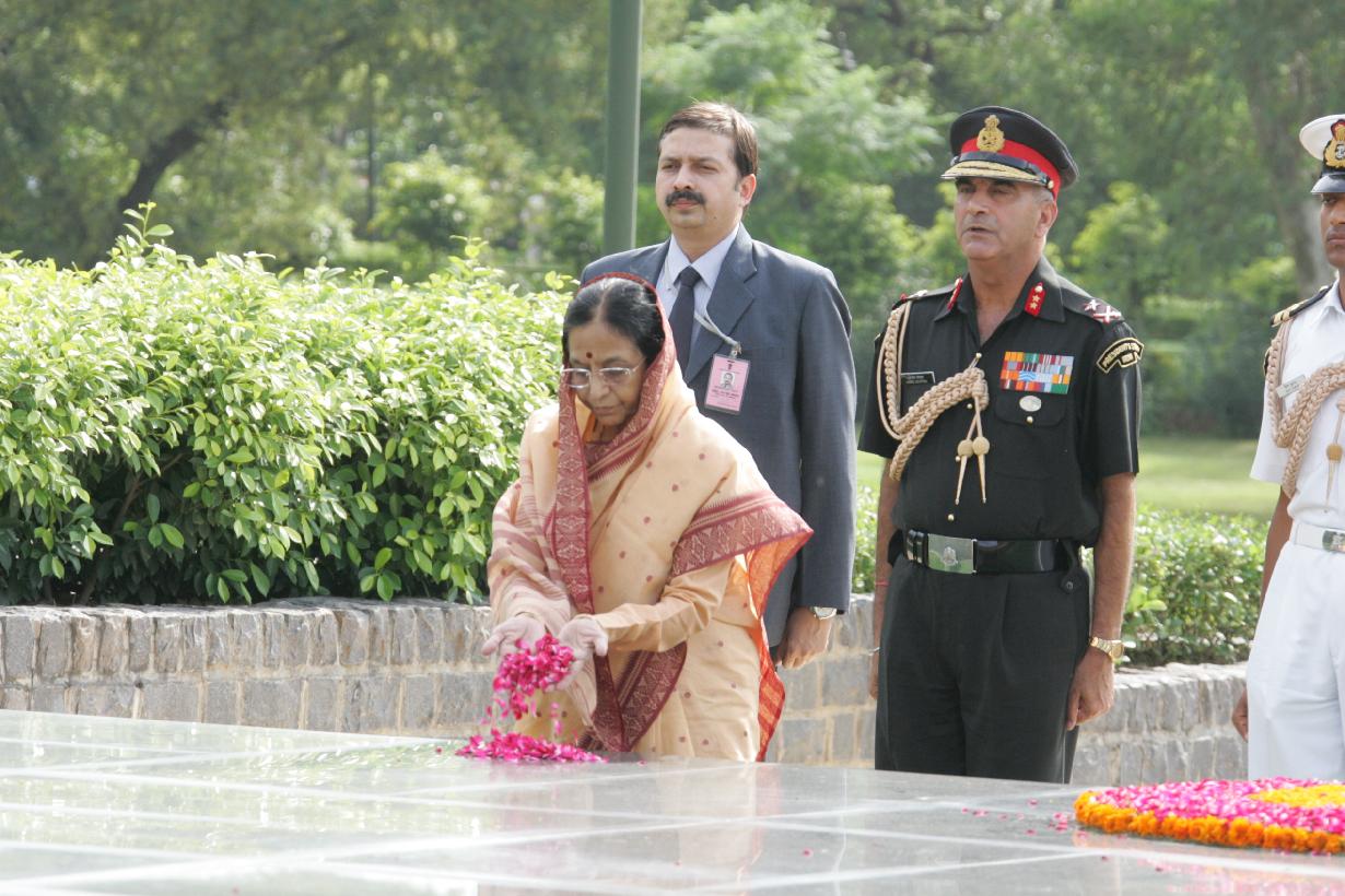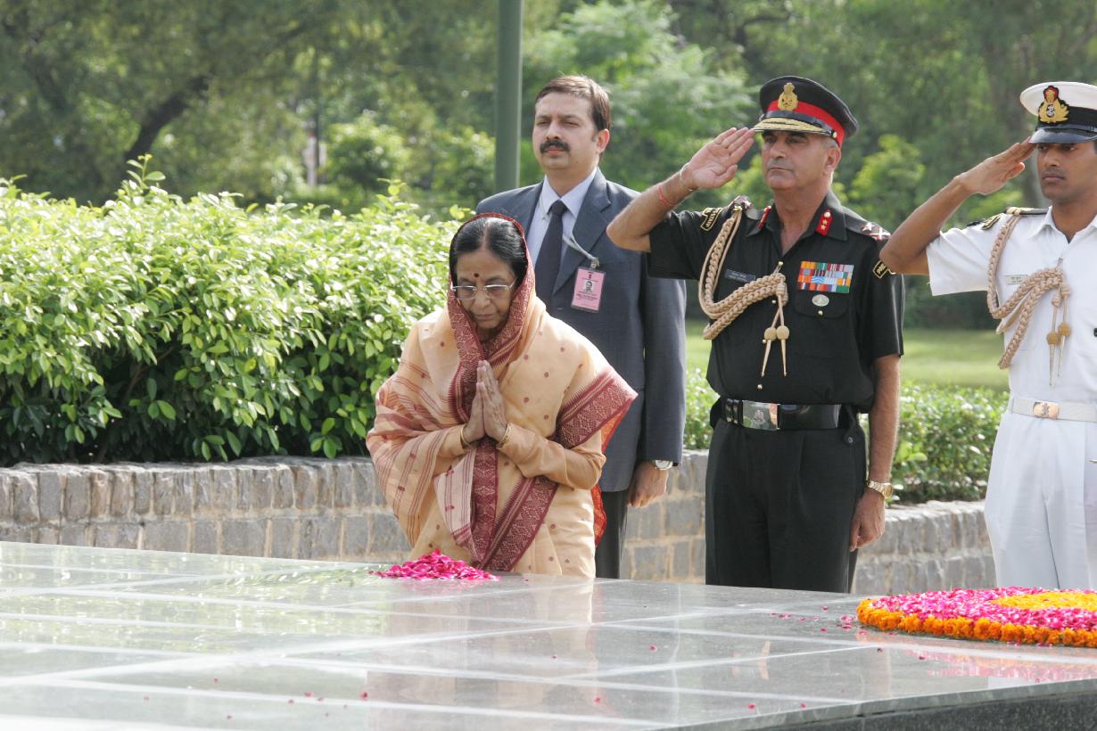 | Caption: | The President of India, Smt Pratibha Devisingh Patil paying tributes at the Samadhi of Charan Singh at Kisan Ghat in New Delhi on July 26, 2007 |