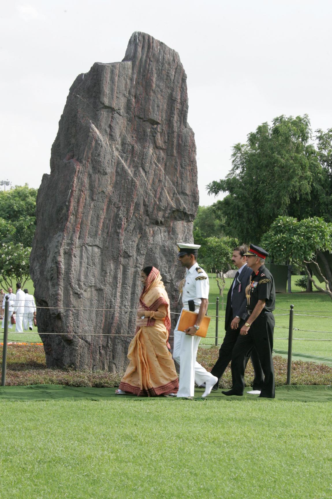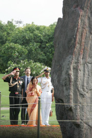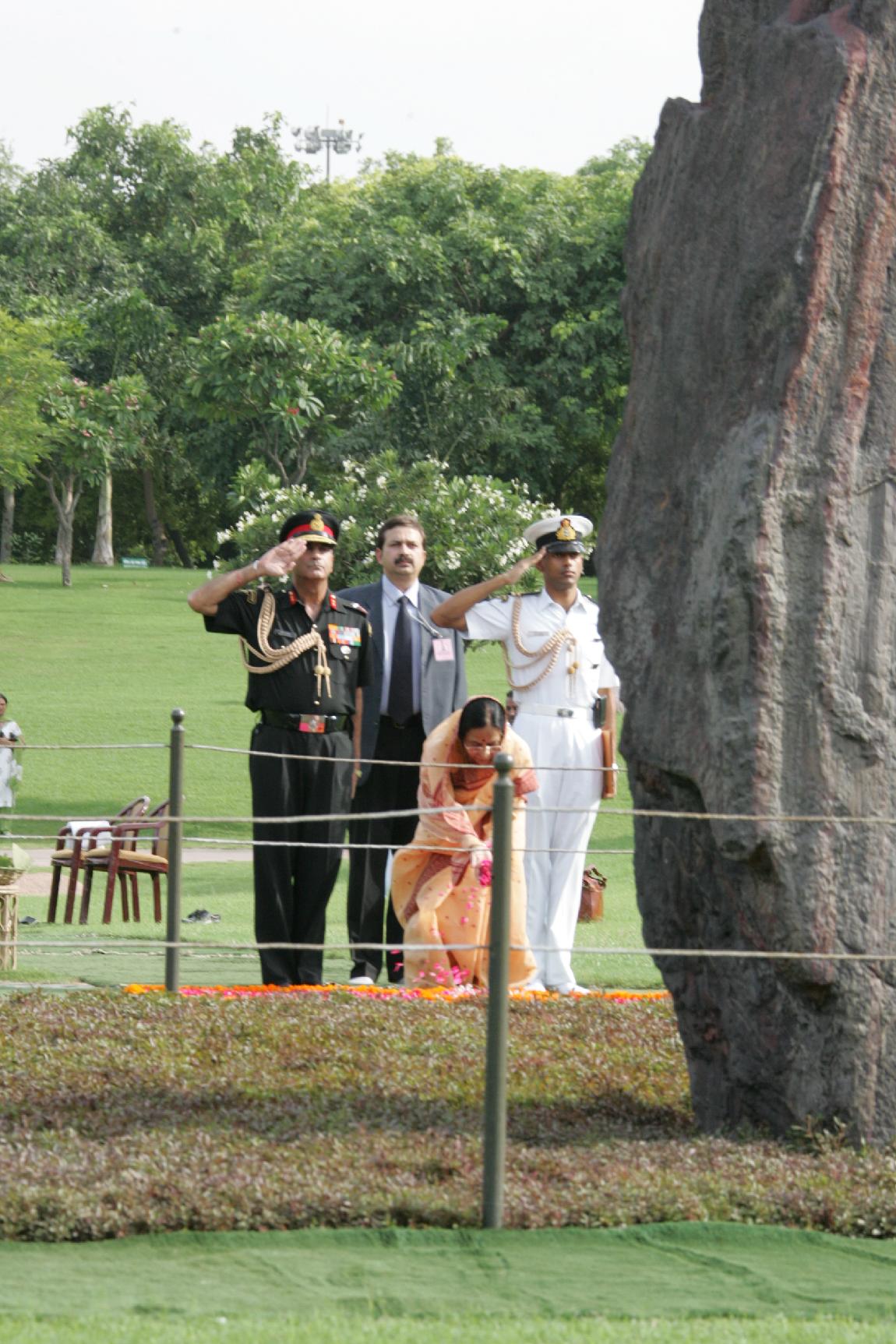 | Caption: | The President of India, Smt Pratibha Devisingh Patil paying tributes at the Samadhi of the Former Prime Minister of india, Late Smt Indira Gandhi at Shakti Sthal in New Delhi on July 26, 2007 |