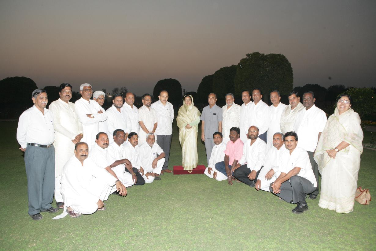| Caption: | The President of India, Smt Pratibha Devisingh Patil interacting with Shri Ranjeet Deshmukh and others at Rashtrapati Bhavan in New Delhi on Feb 21, 2008 |