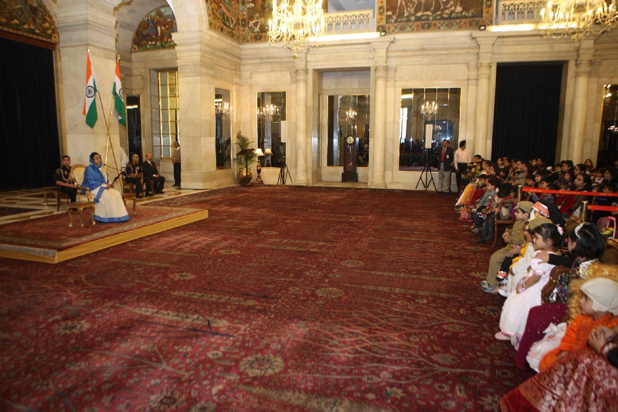 | Caption: | The President of India, Smt Pratibha Devisingh Patil interacting with the various children s on the occasion of Children Day at Rashtrapati Bhavan in New Delhi on Nov 14, 2009 |