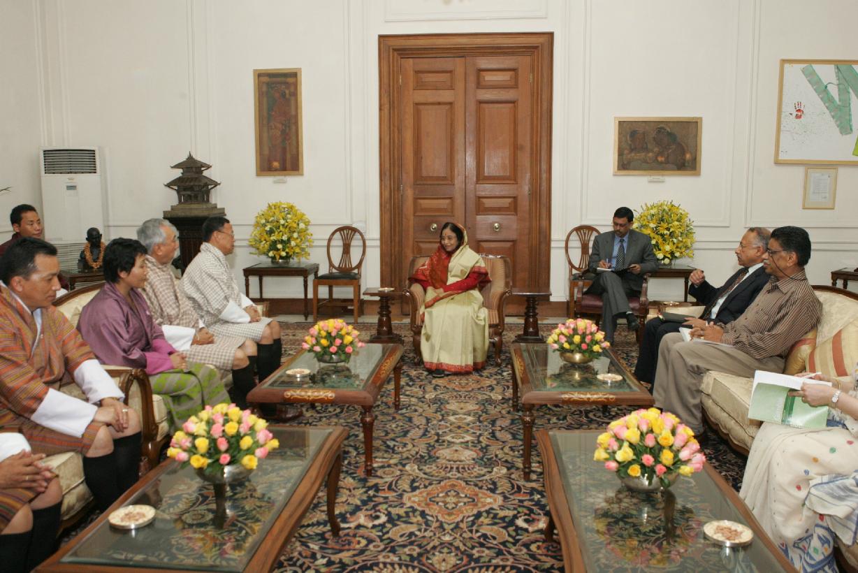 | Caption: | The President of India, Smt Pratibha Devisingh Patil interacting with the Bhutanese Parliamentary Delegation led by the Speaker of the National Assembly of Bhutan, HE Mr Jigme Tshultim at Rashtrapati Bhavan in New Delhi on Aug 26, 2008 |