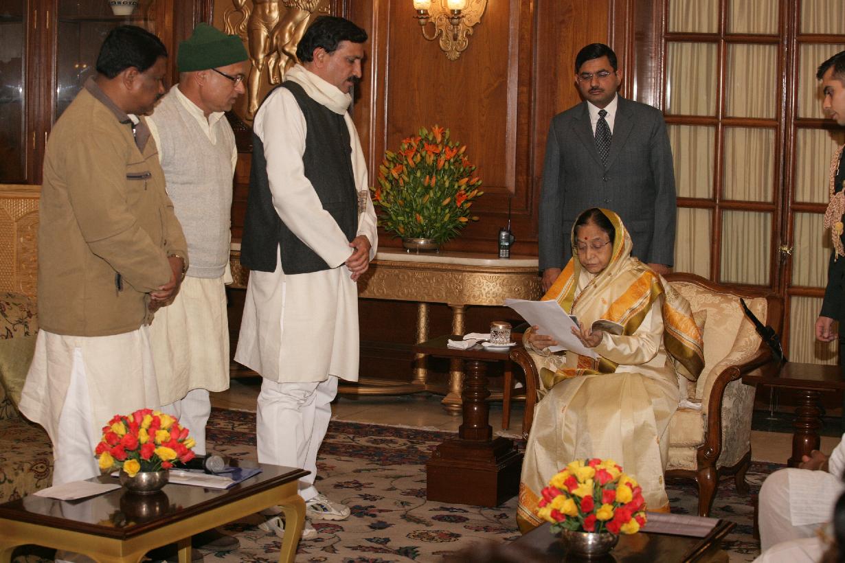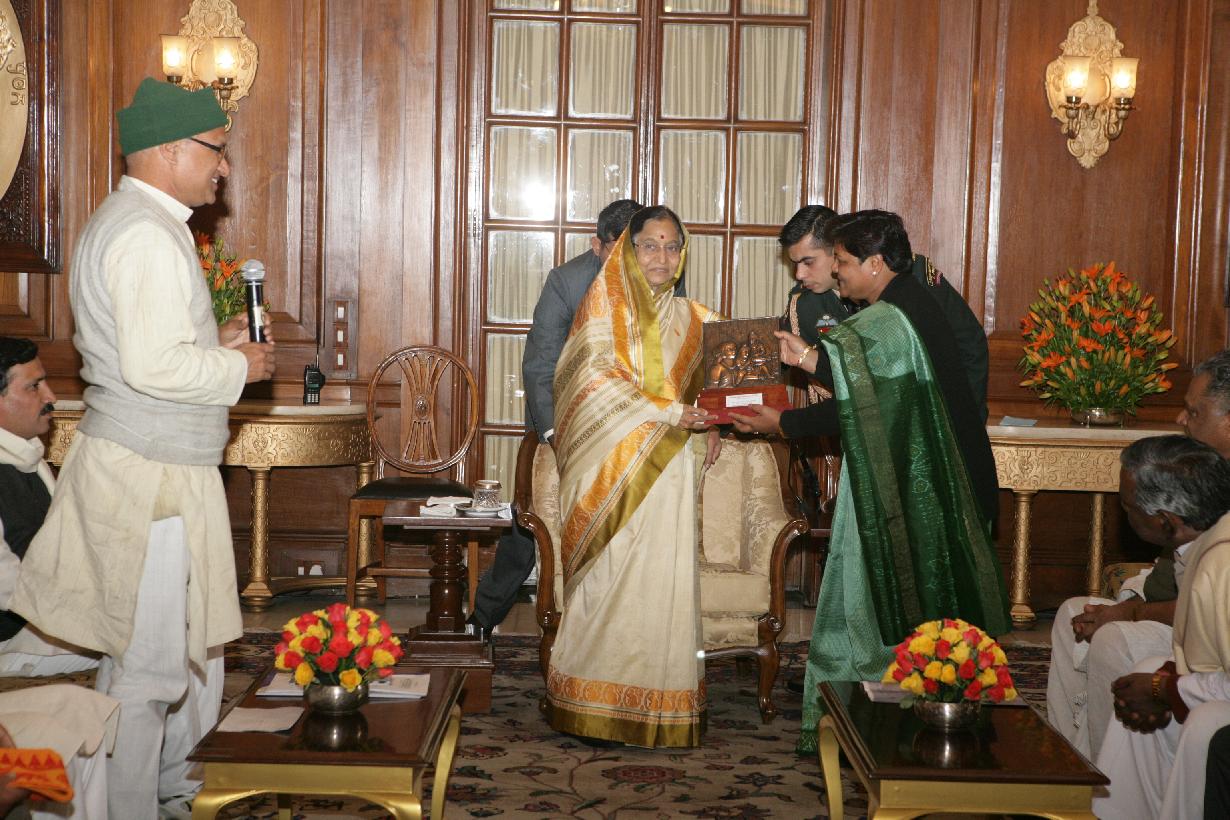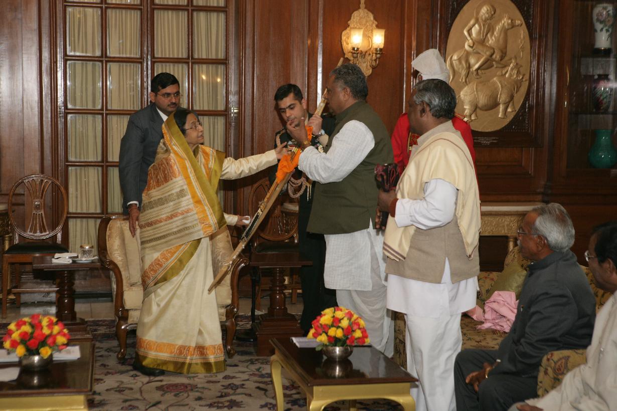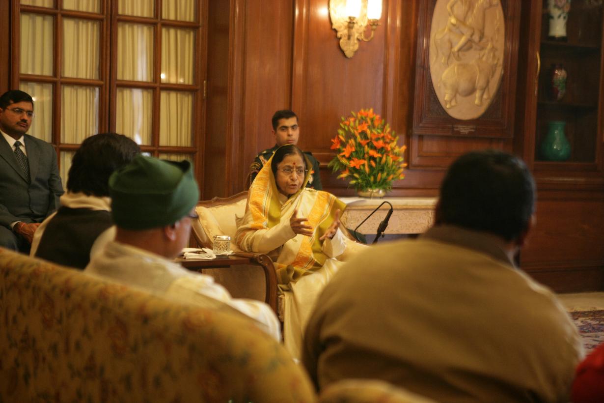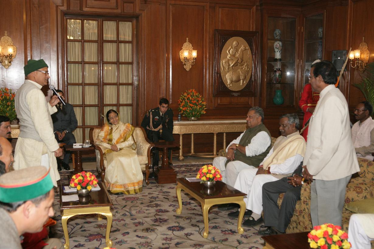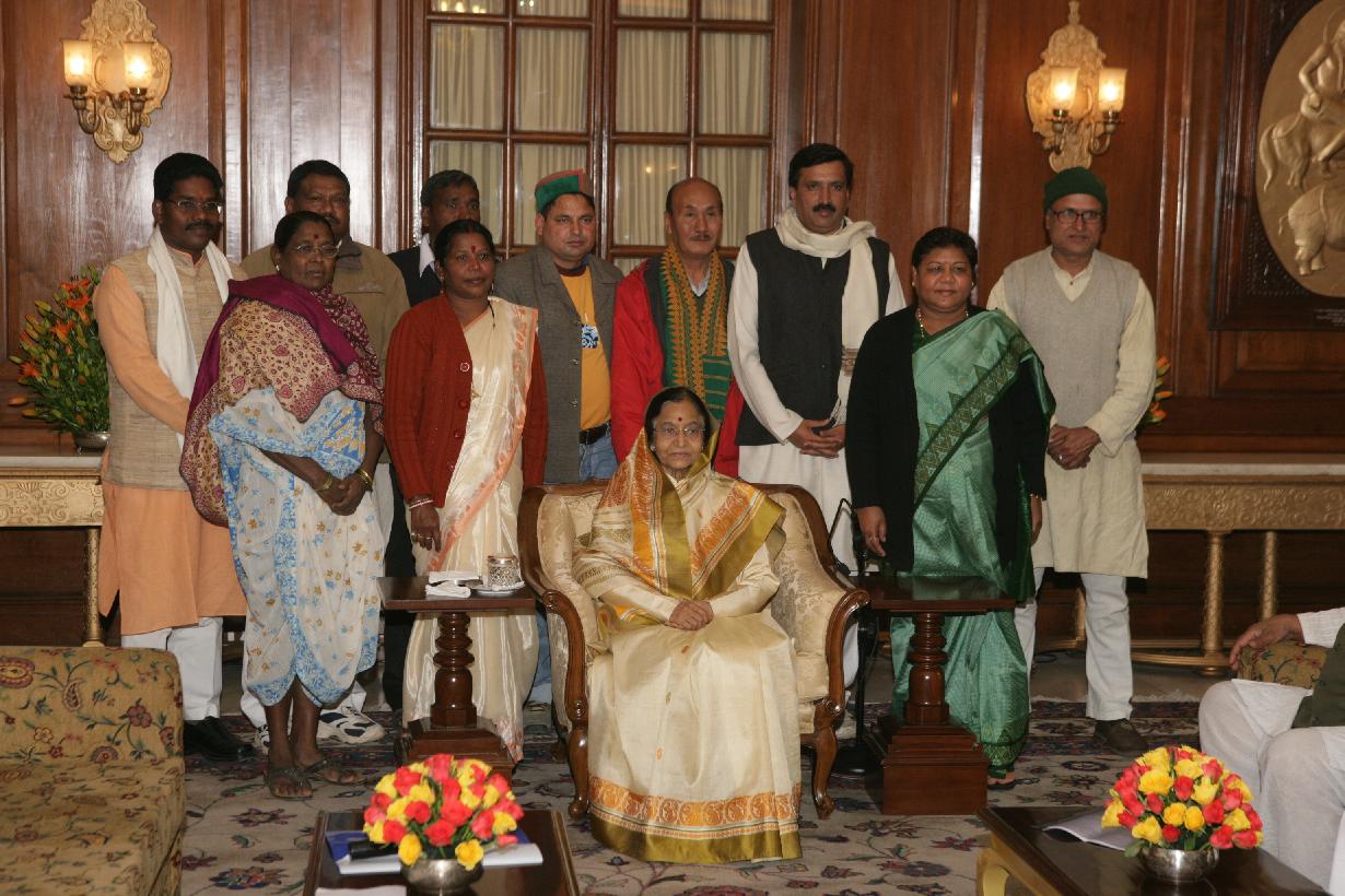 | Caption: | The President of India, Smt Pratibha Devisingh Patil interacting with the Delegation from Janjati Suraksha Manch, Udaipur at Rashtrapati Bhavan in New Delhi on Jan 18, 2010 |