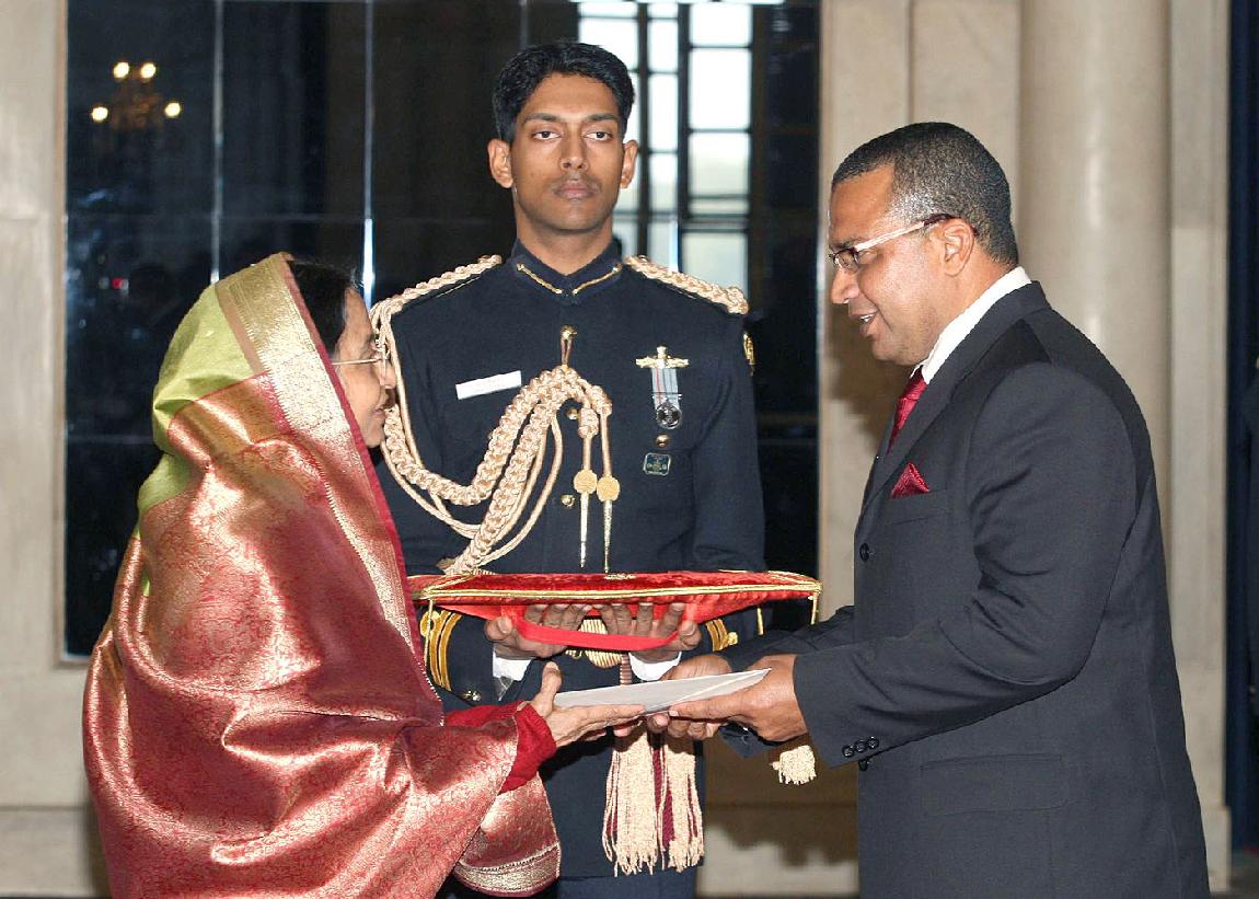 | Caption: | The High Commissioner-Designate of Seychelles to India, HE Mr Dick Esparon presenting his credential to the President of India, Smt Pratibha Devisingh Patil at Rashtrapati Bhavan in New Delhi on Feb 13, 2008 |