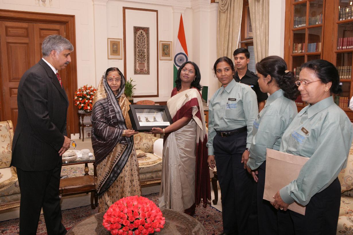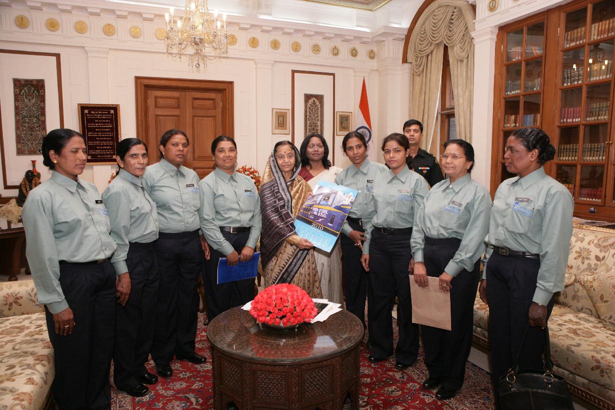 | Caption: | The President of India, Smt Pratibha Devisingh Patil interacting with Smt Urmila Ekka and others from Tejaswinis Group of Tata Steel, the Group is the Part of the Company s Efforts at Empowering its Women Employee from Socio Economically Weaker Section of Society at Rashtrapati Bhavan in New Delhi on March 17, 2010 |