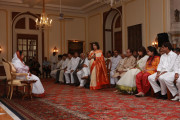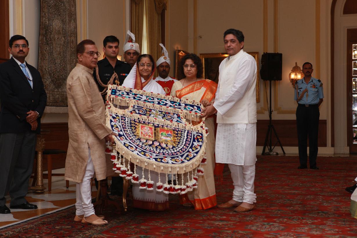| Caption: | The President of India, Smt Pratibha Devisingh Patil receiving a 'Pankha' of Phool Walon Ki Sair, Organised by Anjuman Sair-e-Gul Faroshan at Rashtrapati Bhavan in New Delhi on Oct 07, 2009 |