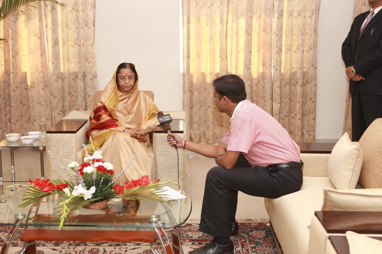 | Caption: | The President of India, Smt Pratibha Devisingh Patil giving Interview to Doordarshan at ALG (Rajouri) in Jammu & Kashmir on Oct 09, 2009 |