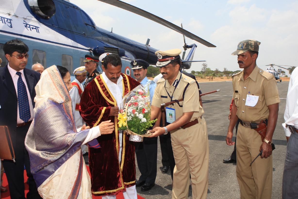 | Caption: | The President of India, Smt Pratibha Devisingh Patil arriving at Mysore Helipad in Karnataka on May 09, 2009 |