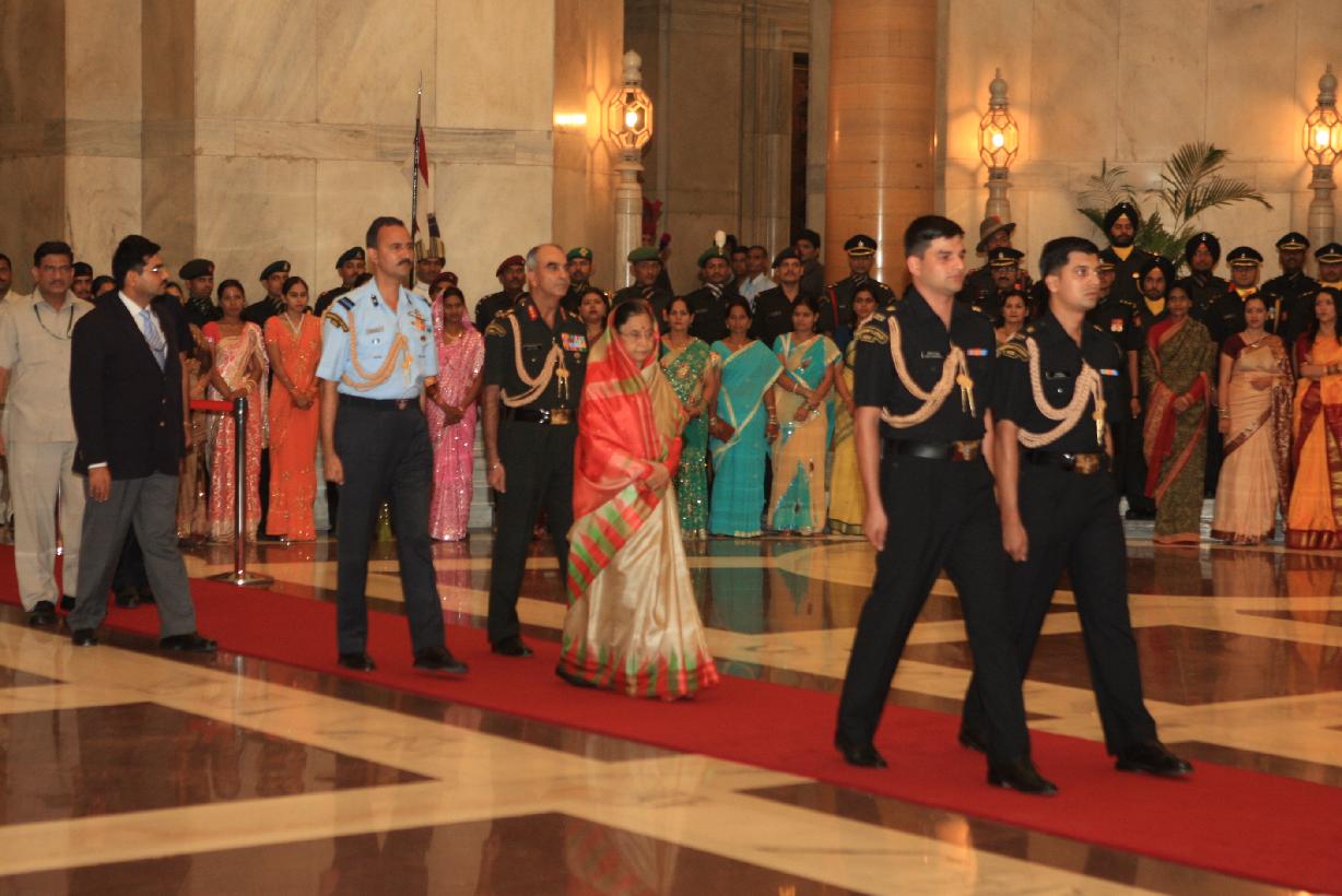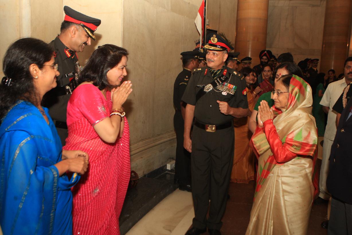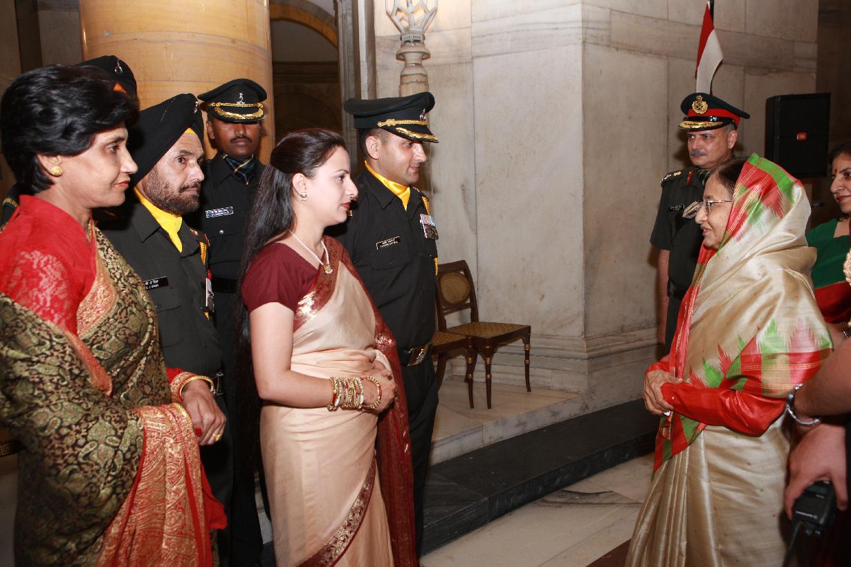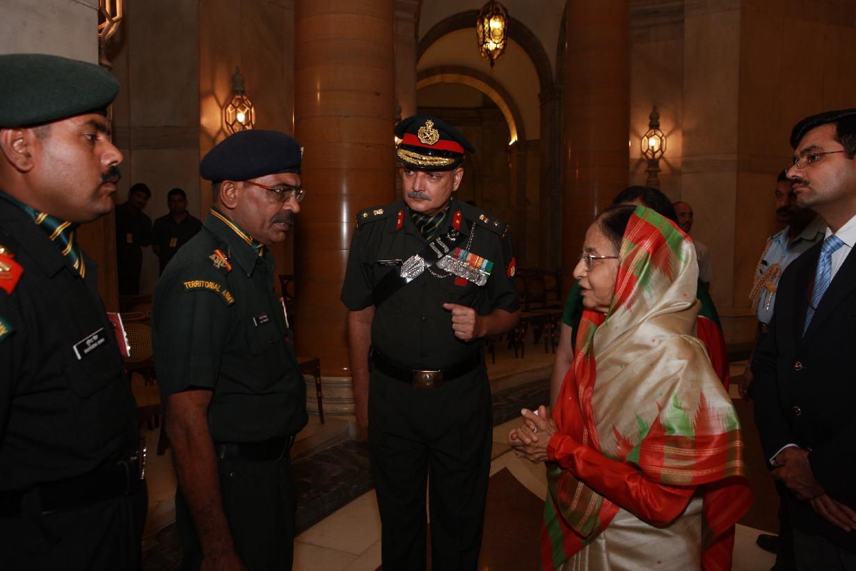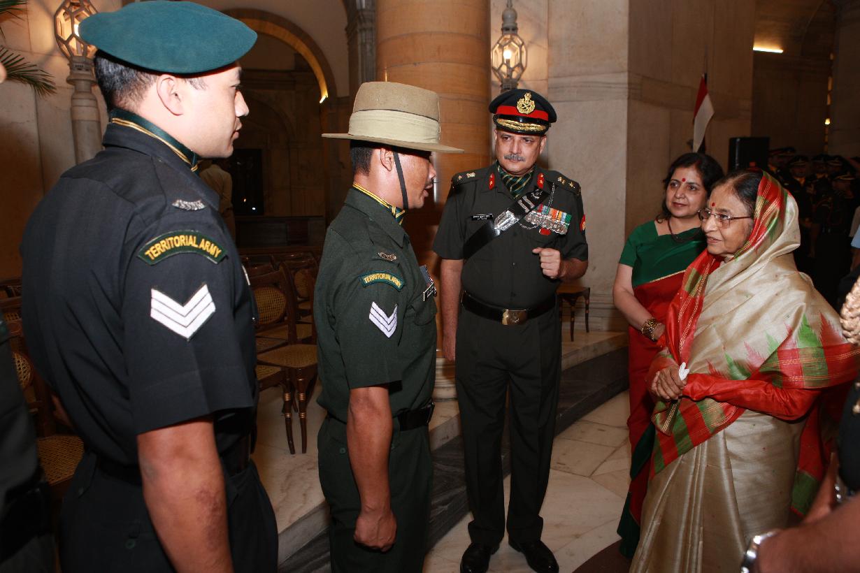 | Caption: | The President of India, Smt Pratibha Devisingh Patil interacting with the Officers of the Territorial Army, Junior Commissioned Officers and Ordinary Recruits Personnel and their families at Rashtrapati Bhavan in New Delhi on Oct 07, 2009 |