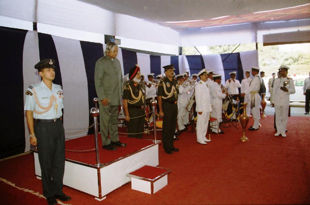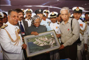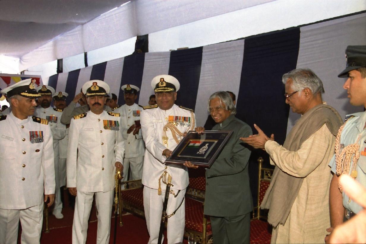 | Caption: | The President of India, Dr A P J Abdul Kalam presenting the Colors to Indian Coast Guards at Daman at Daman in Daman & Diu on Dec 01, 2002 |