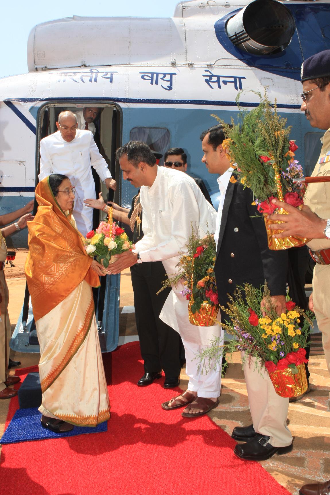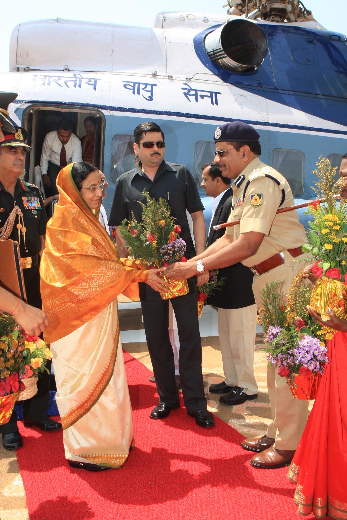 | Caption: | The President of India, Smt Pratibha Devisingh Patil arriving at Sringeri Helipad in Karnataka on May 10, 2009 |
