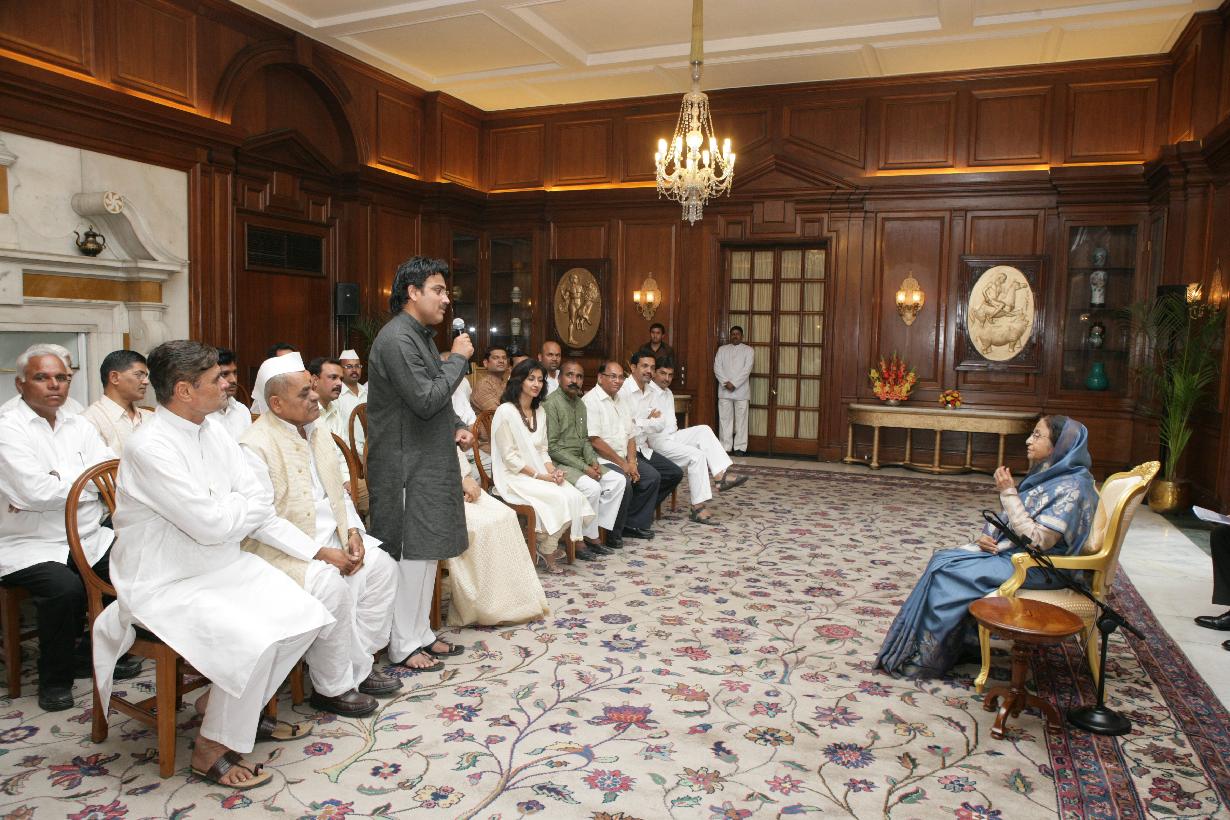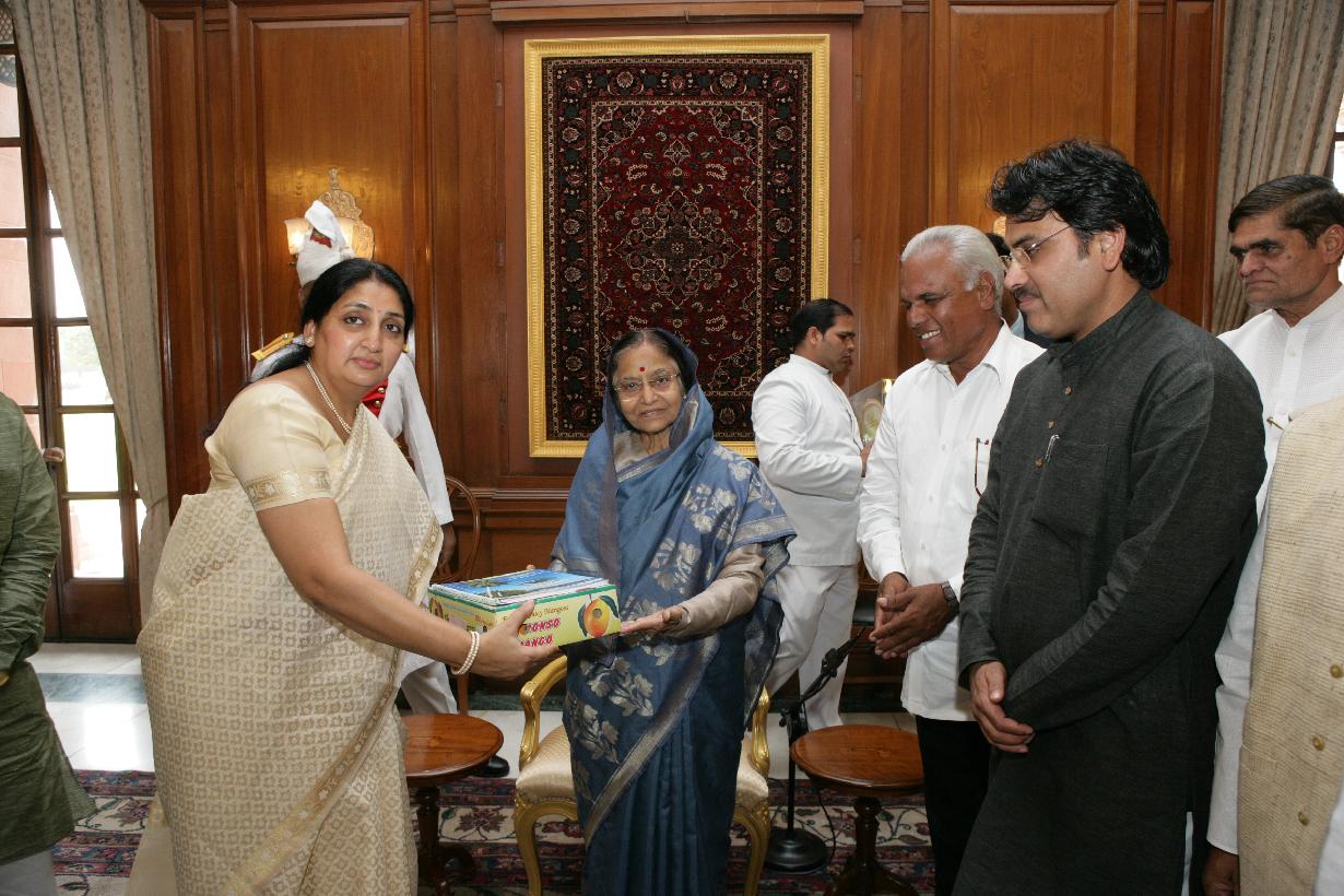 | Caption: | The President of India, Smt Pratibha Devisingh Patil interacting with Smt Sunetra Ajit Pawar and others at Rashtrapati Bhavan in New Delhi on March 18, 2010 |