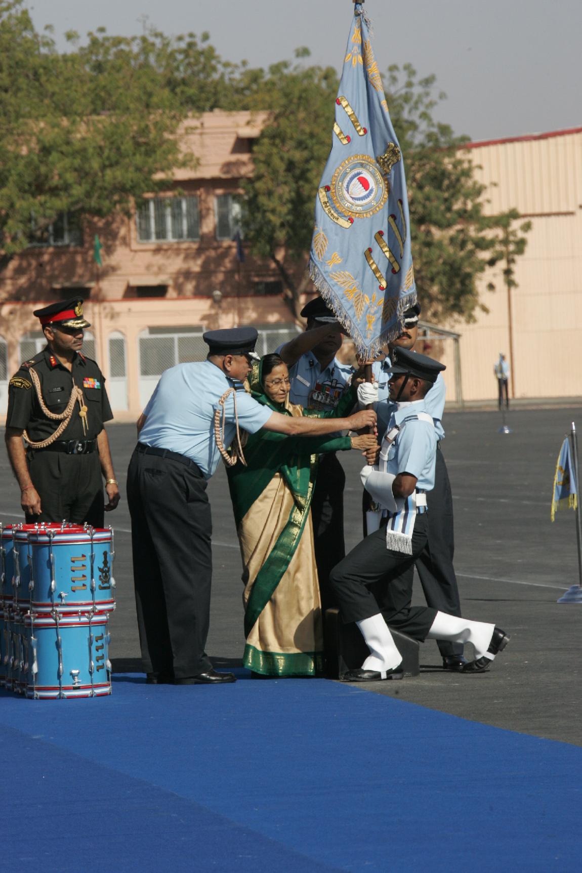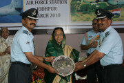 | Caption: | The President of India, Smt Pratibha Devisingh Patil releasing the First Day Cover on the occasion of presentation of Presidential Standard to 49 Transport Squadron and 107 Helicopter Unit at Jodhpur in Rajasthan on March 09, 2010 |